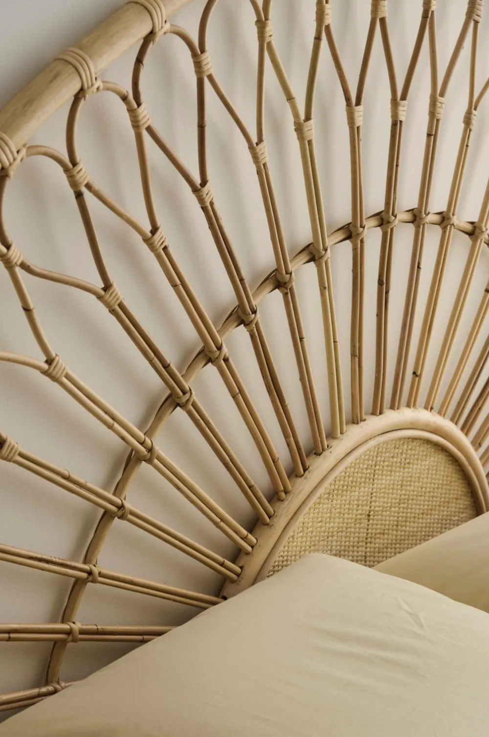 Hovedgavl i rotting og plywood. Gavlen stilles på gulvet. Frihøjde under møbel 33 cm. Leveres samlet.