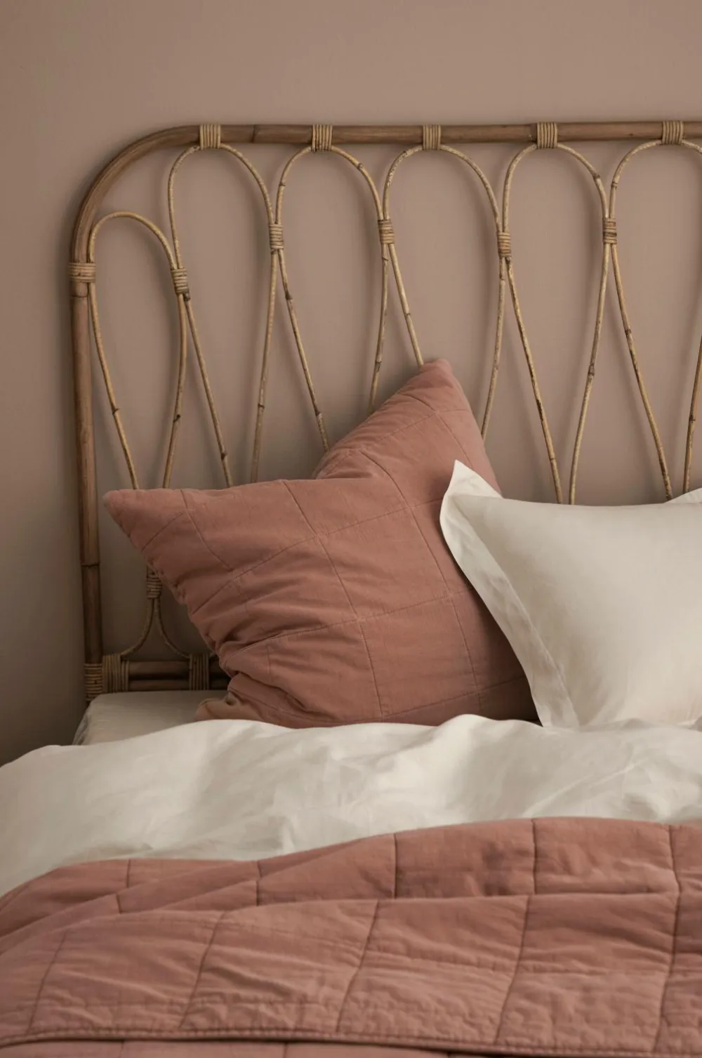 Hovedgavl i rotting med et dekorativt mønster. Gavlen stilles på gulvet.