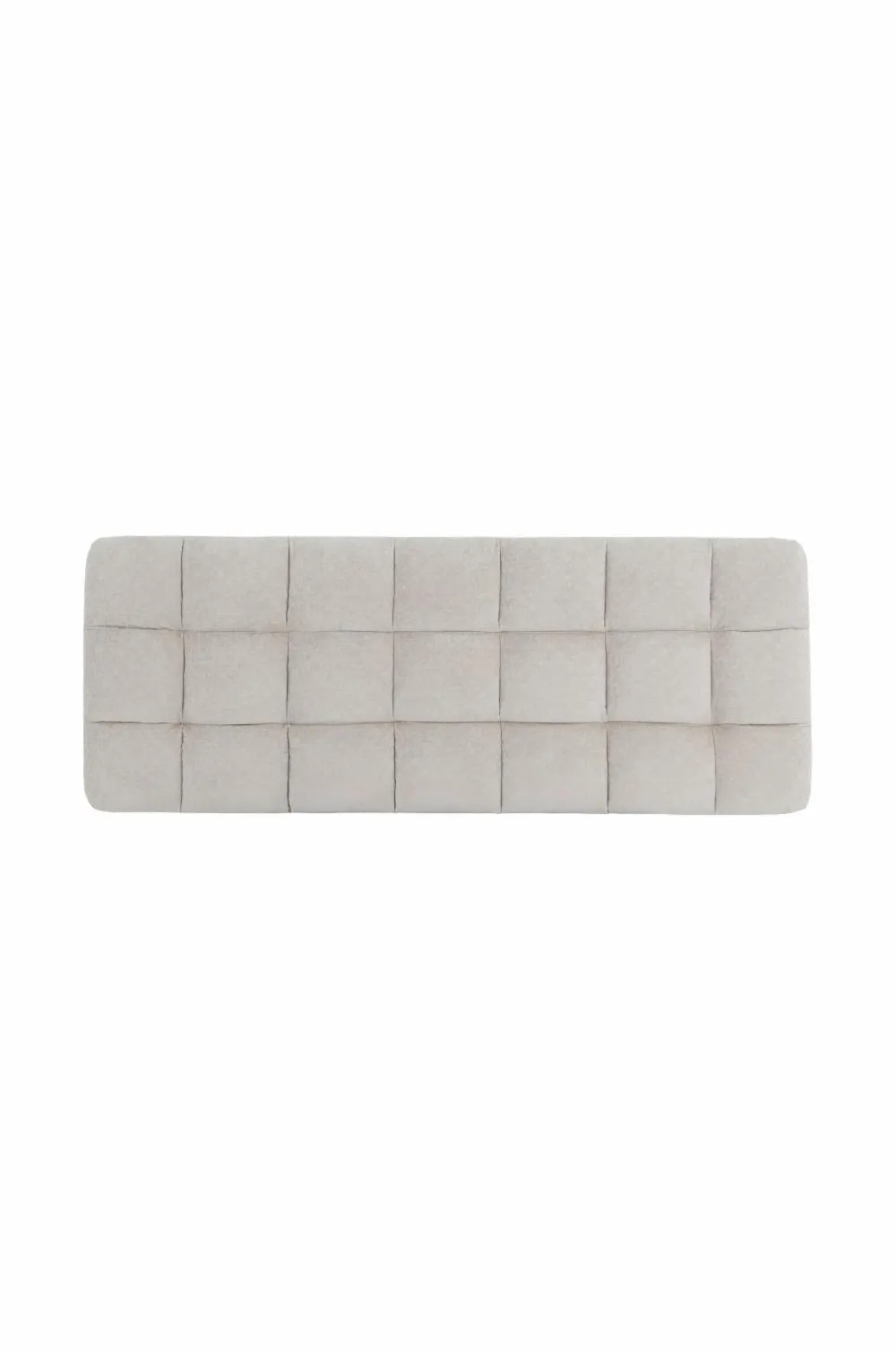 Vatteret sengegavl med ramme i massivt træ og plywood. Betræk i vasket velour af polyester med dekorative sømme som danner et ternet mønster. Fyld af polyestervat. Til vægophængning.
