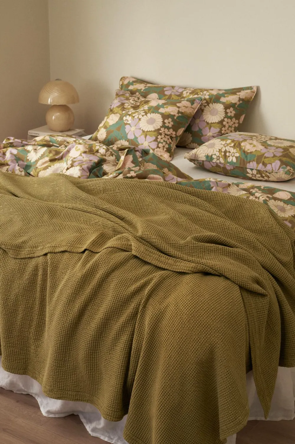 • Vaffelvævet sengetæppe i glat, lidt tyndere kvalitet