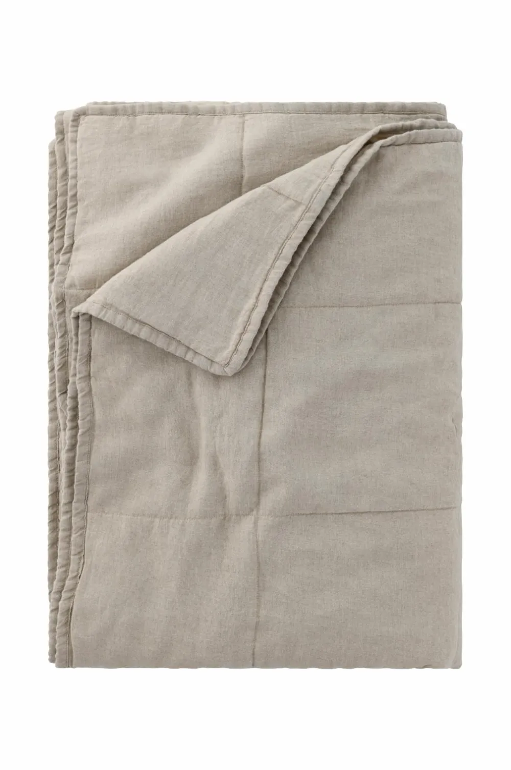 Let, ternquiltet sengetæppe med forside i vasket hør. Bagside i bomuld.