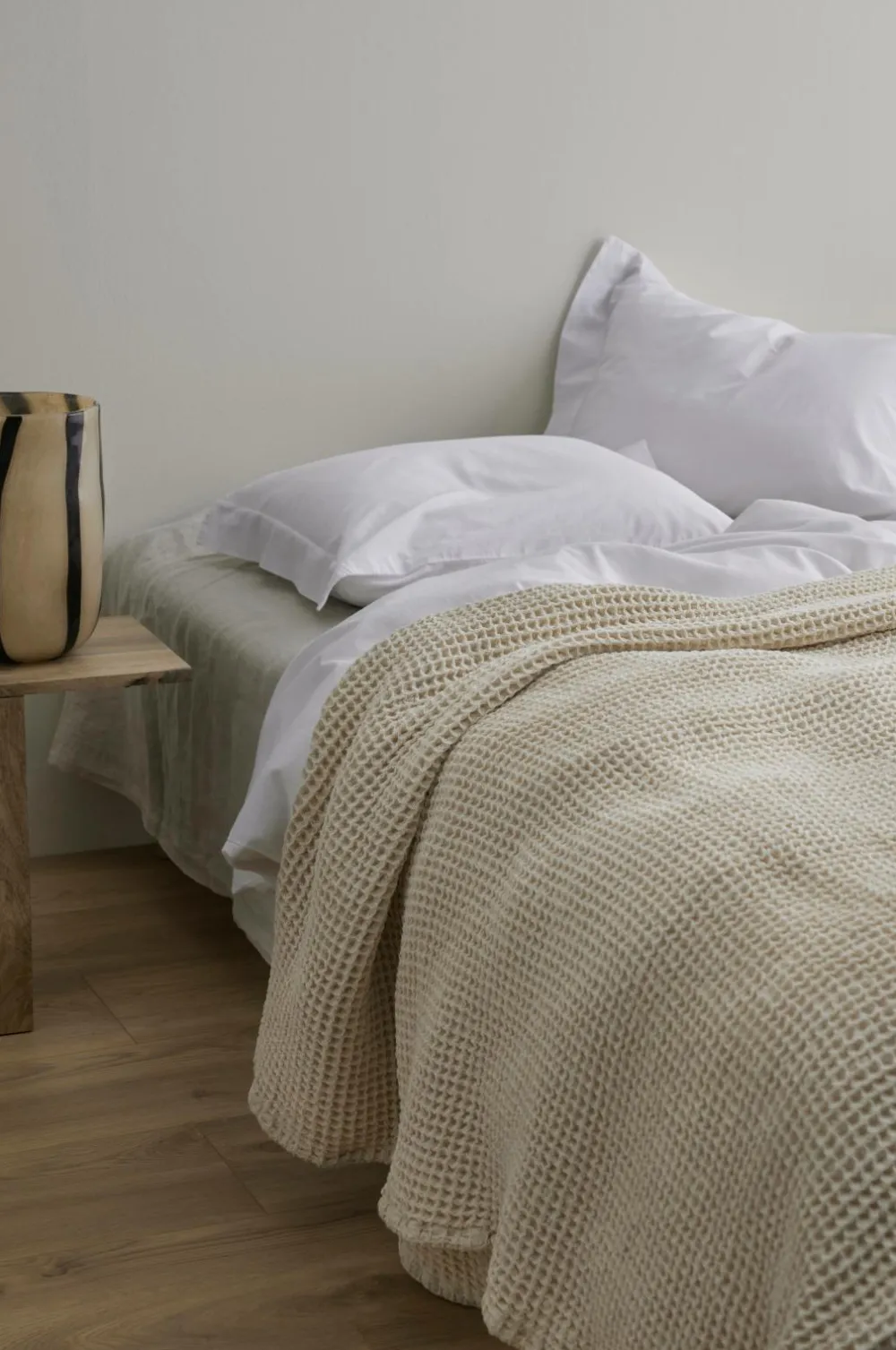 Sengetæppe i vasket bomuld med kraftigt vaffelmønster.