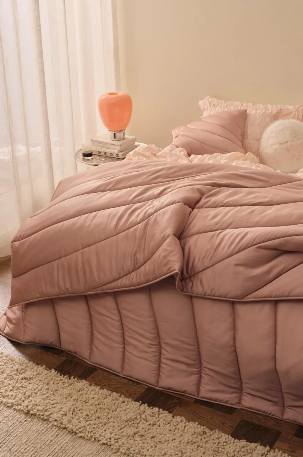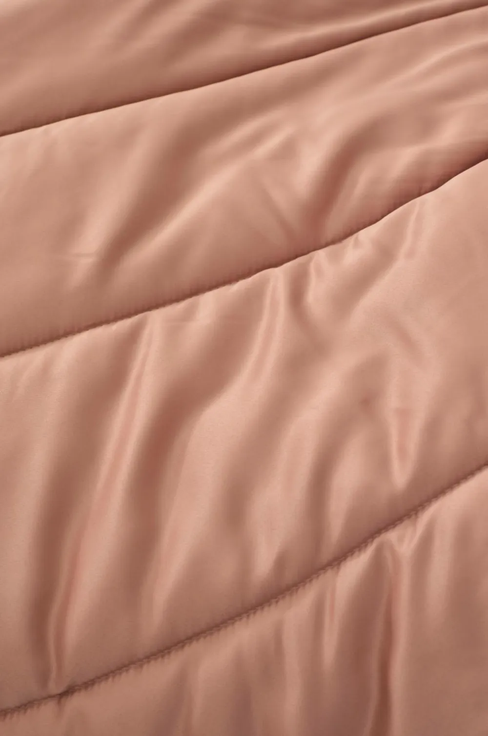 • Quiltet sengetæppe med skinnende overflade og luksuriøs følelse