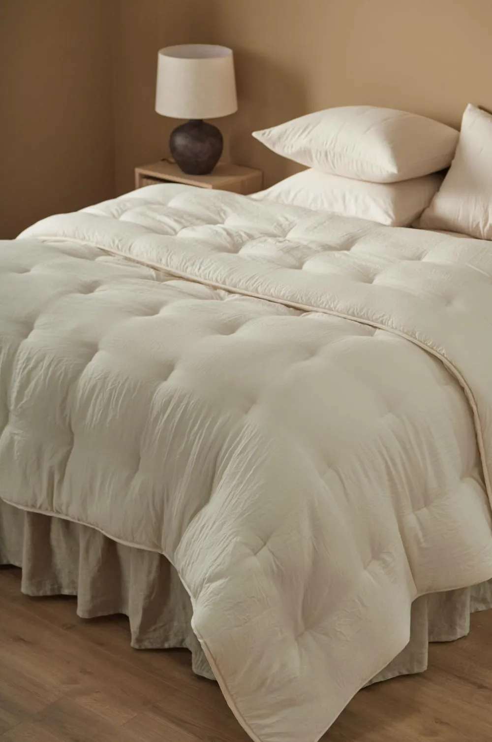 • Quiltet sengetæppe i mikrofiber med blød, vasket, mat overflade