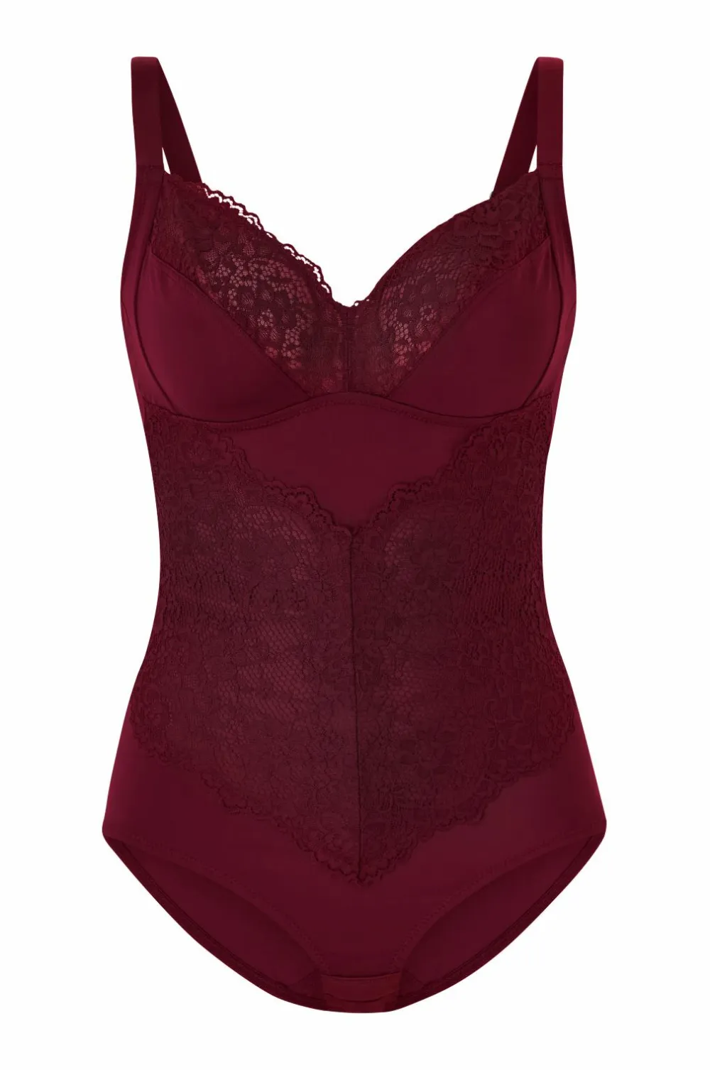 Ellos Shaping>Plus collection Shapingbody med blondedetaljer – medium støtte Vinrød