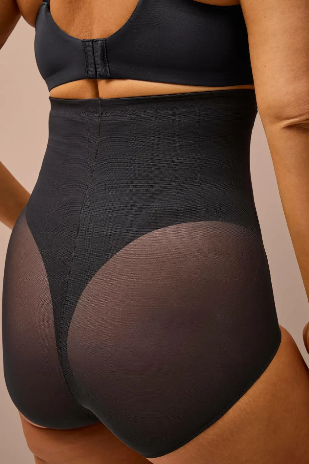 Højtaljede shaping-shorts med indvendig silikoneelastik, der bliver på plads. Den har en skulpturel, fastere støtte over taljen og maven. Konstrueret med minimale sømme for en sømløs, behagelig fornemmelse mod huden.