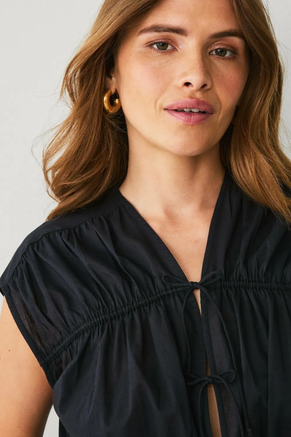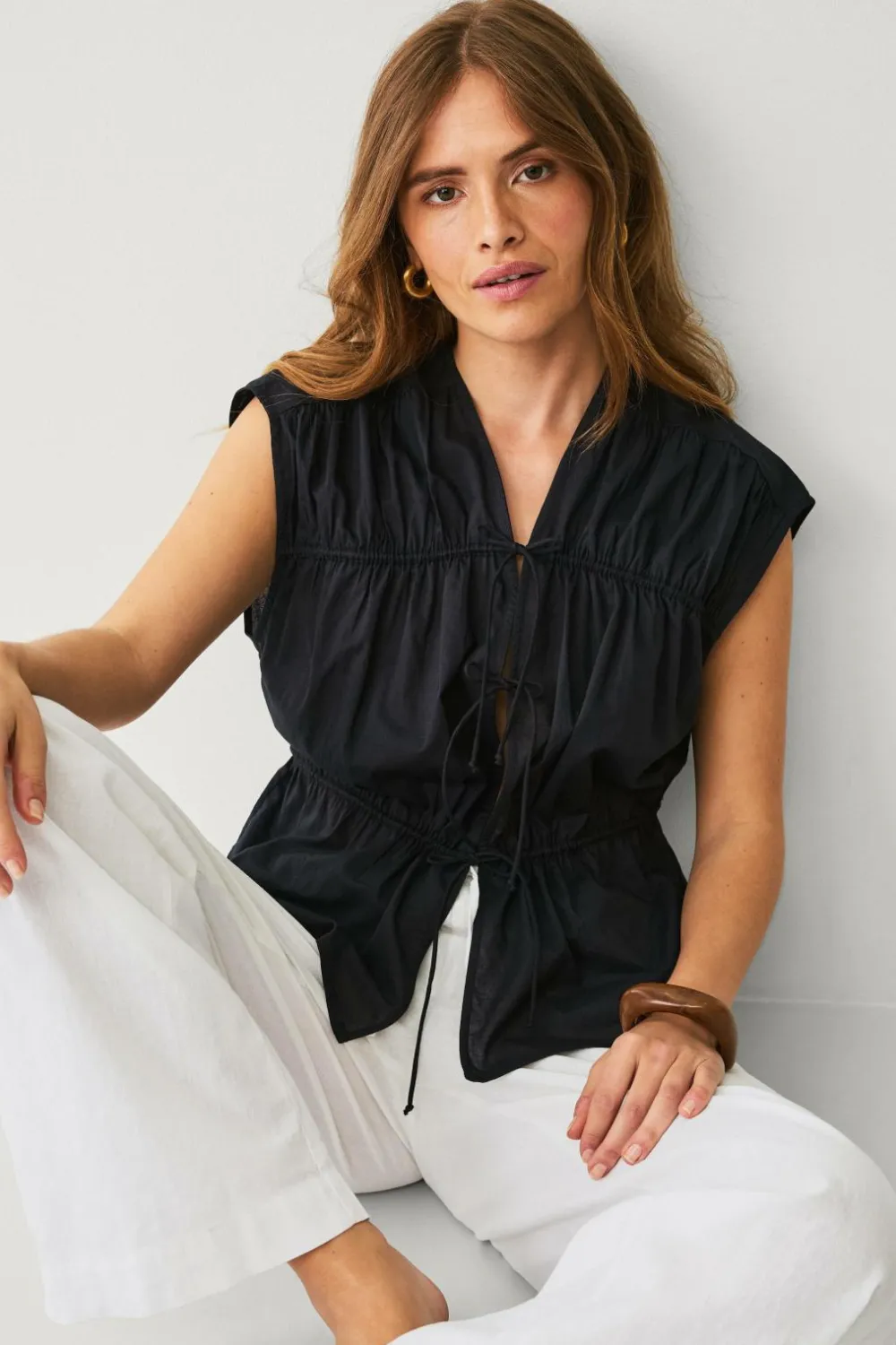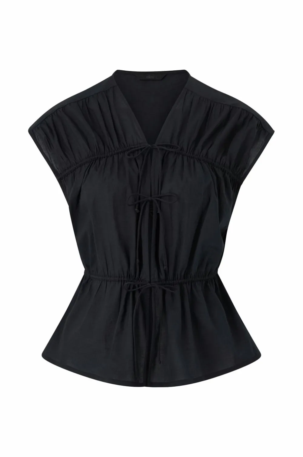 • Ærmeløs model med træksnørre på brystet og ved taljen