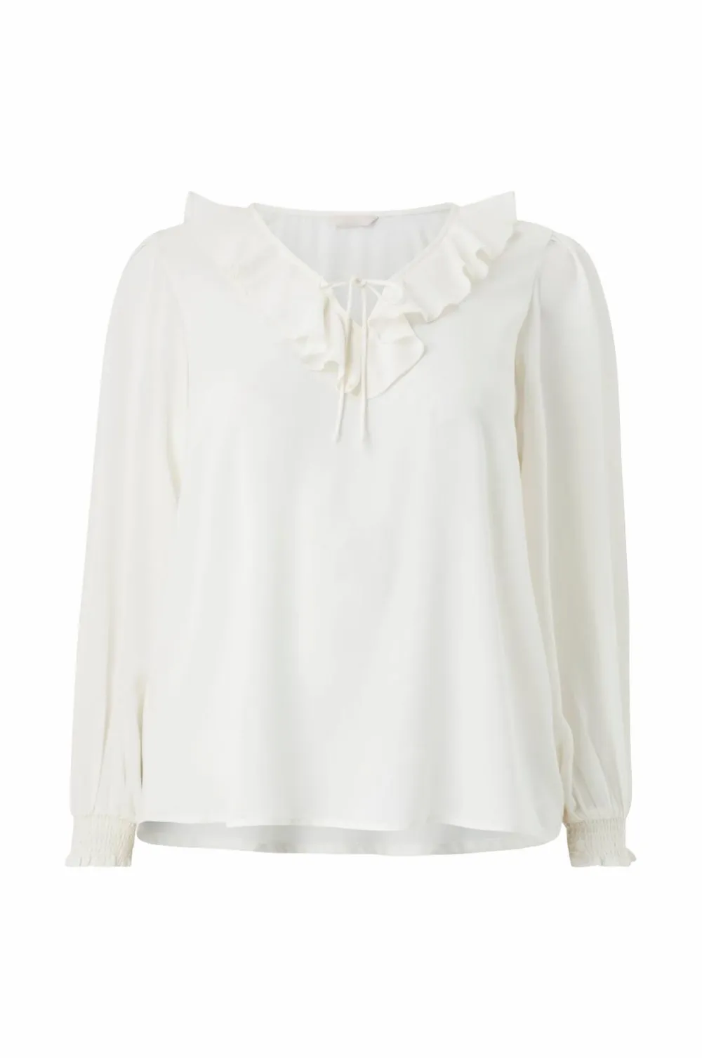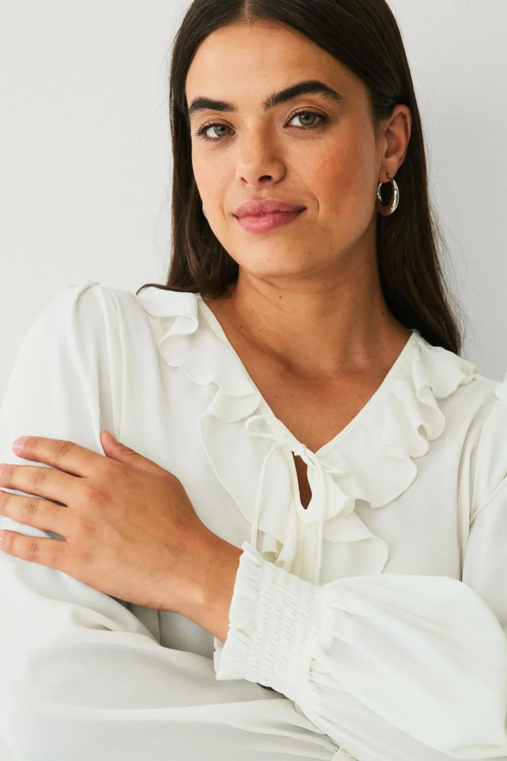 Ellos Skjorter & Bluser>Plus collection Bluse med flæse kremhvid