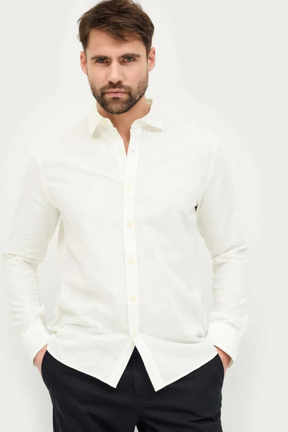 • Langærmet skjorte i kølig hørblanding
