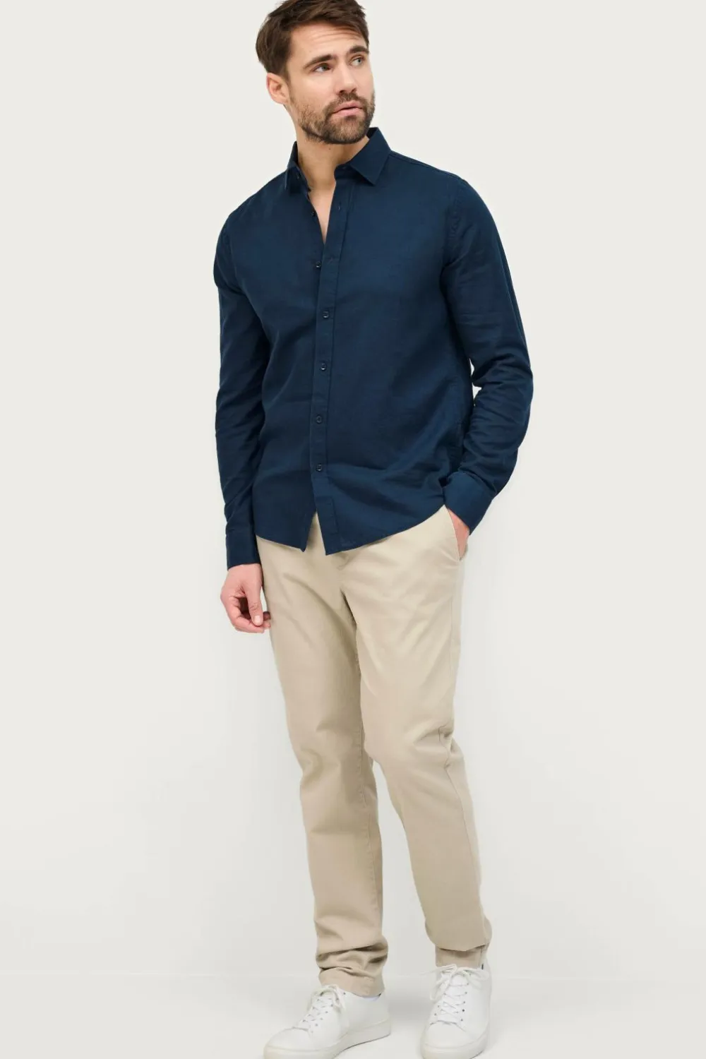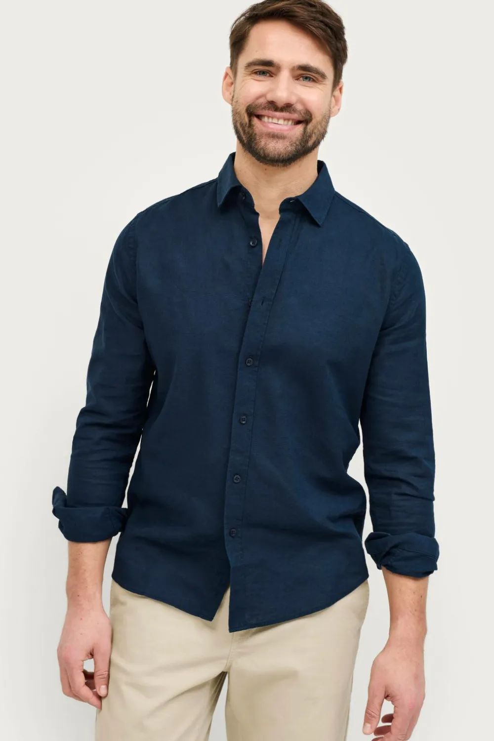• Langærmet skjorte i kølig hørblanding