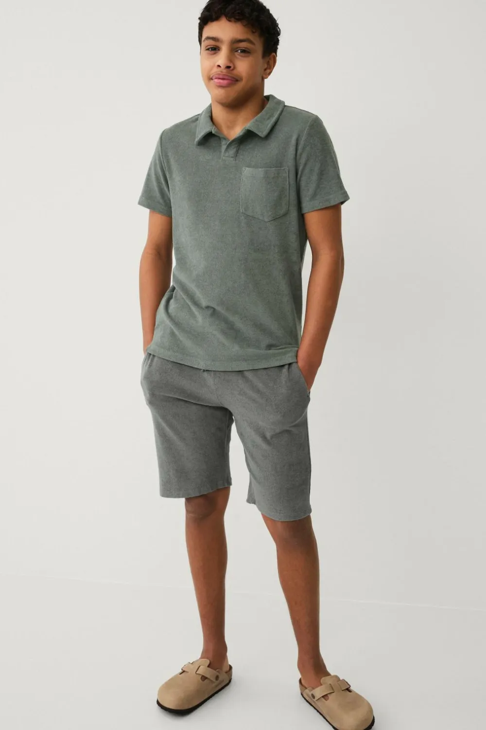 • Kortærmet skjorte i blødt frottémateriale