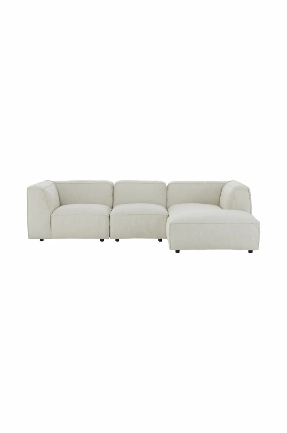 3-pers. sofa med betræk i bouclé. Højrevendt chaiselong (kan ikke venstremonteres).