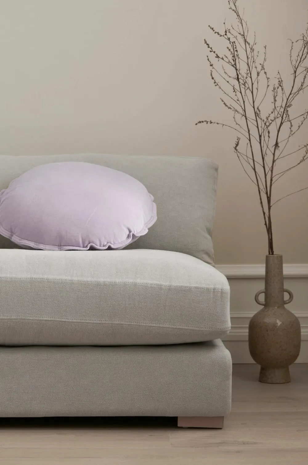 3-pers. sofa med betræk i 100% hør. Ramme og stel i fyrretræ og plywood. Ben af træ. Skumfyld i siddehynden og fibre og fjer i ryghynden for ekstra komfort. Aftageligt betræk på hynderne. Frihøjde under møbel 3 cm. Samlet.