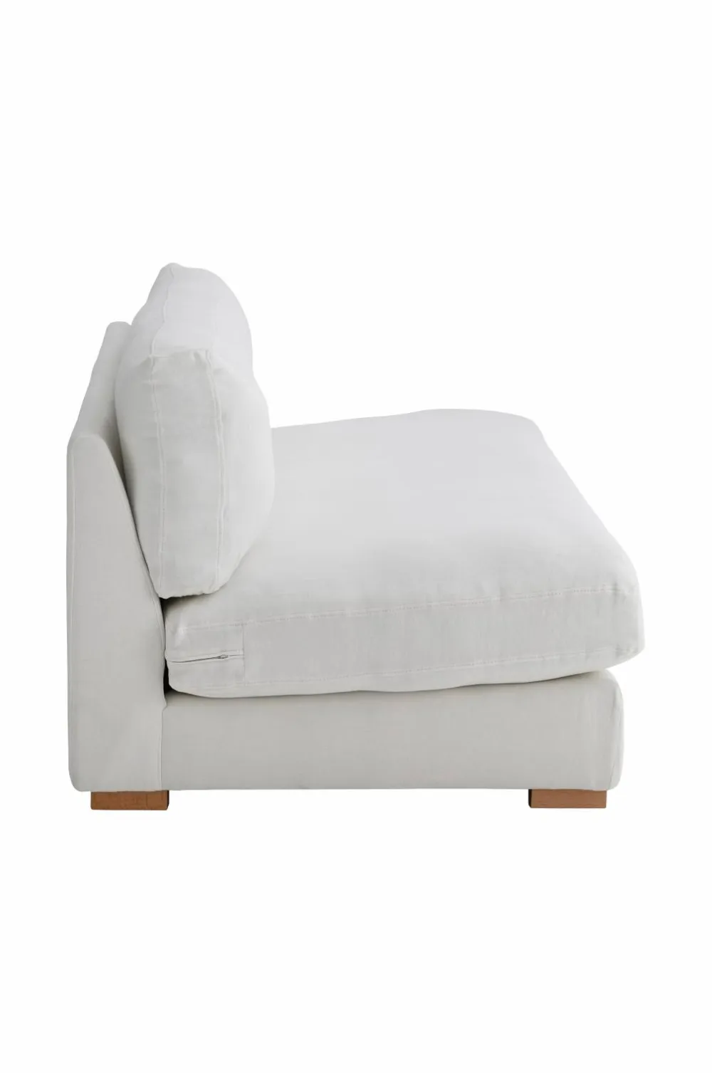 3-pers. sofa med betræk i 100% hør. Ramme og stel i fyrretræ og plywood. Ben af træ. Skumfyld i siddehynden og fibre og fjer i ryghynden for ekstra komfort. Aftageligt betræk på hynderne. Frihøjde under møbel 3 cm. Samlet.