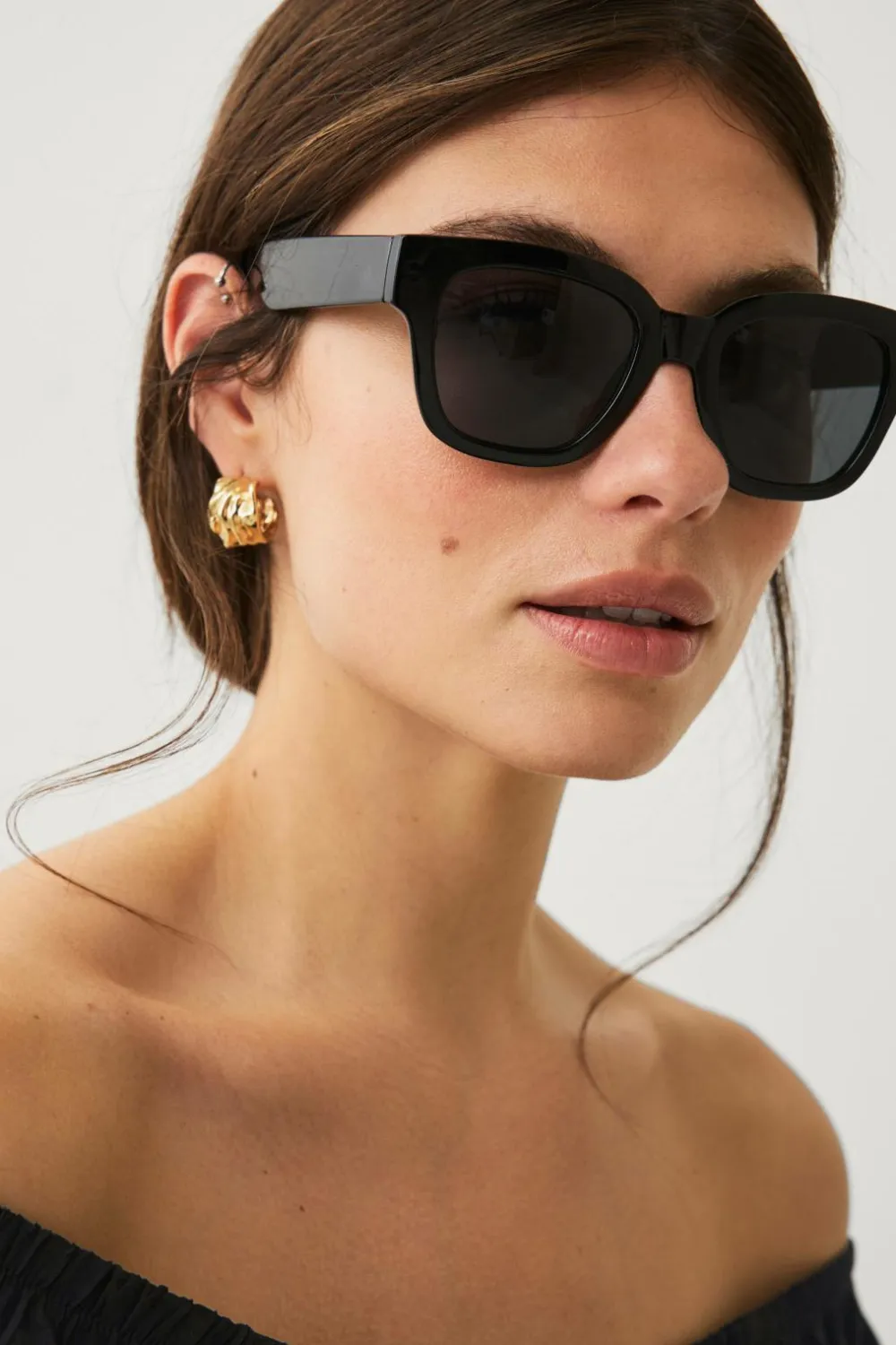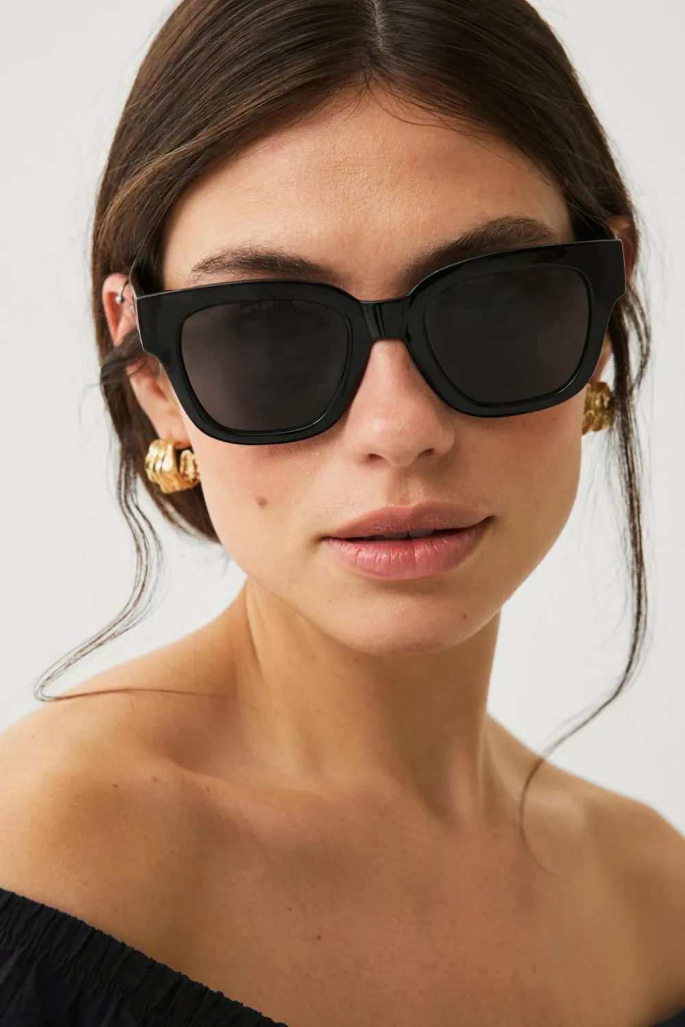 • Firkantet, lidt tykkere solbriller med tonet Plastglas