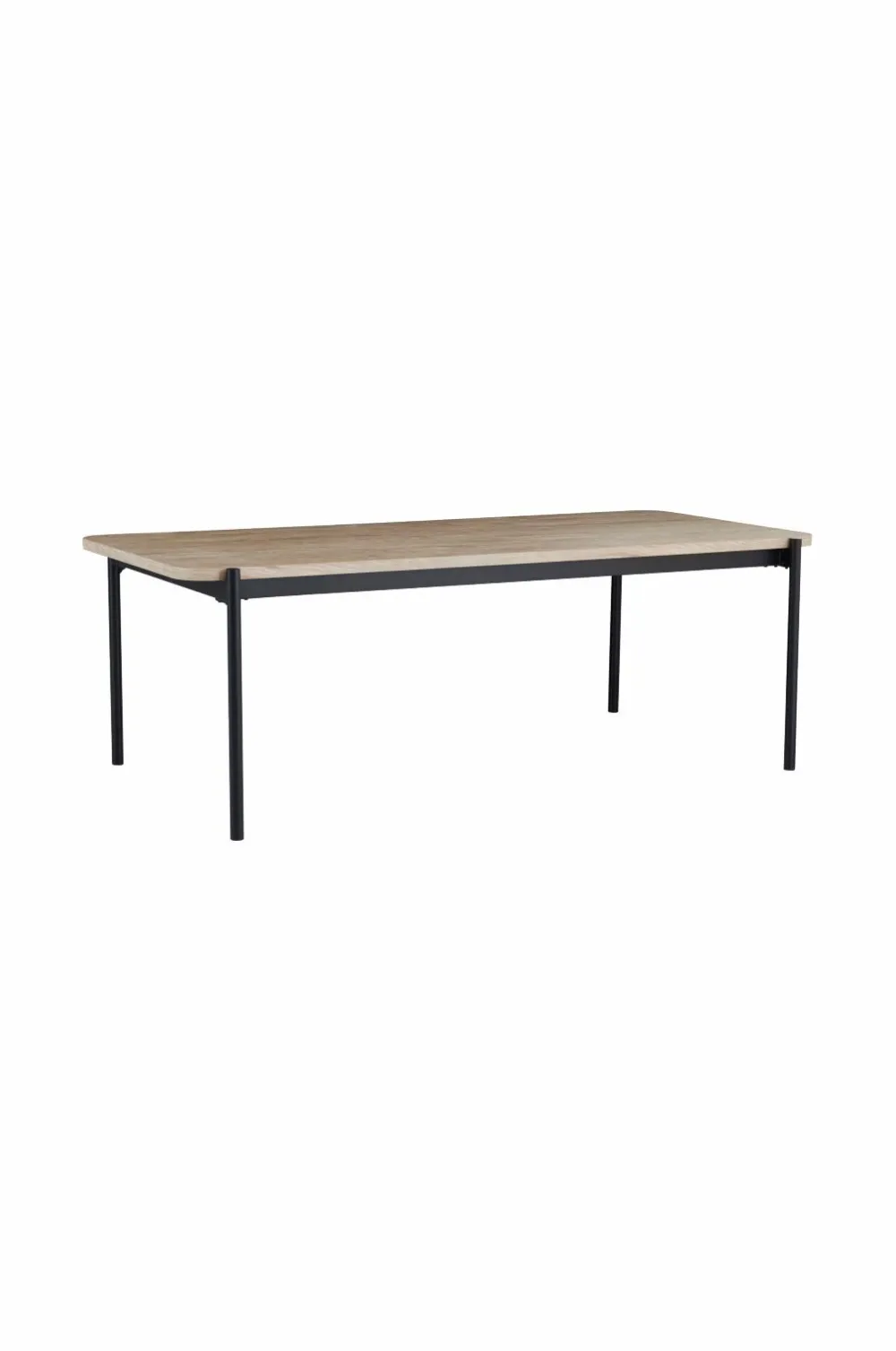 Mål på bord: Længde 220 cm. Total bredde inkl. ben 106 cm (topskivens bredde 98 cm). Højde 75 cm. Frihøjde under bordet 72 cm.