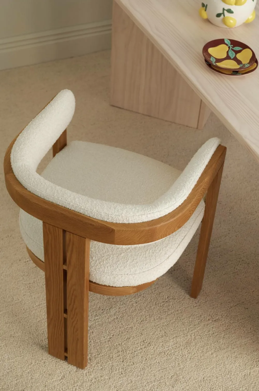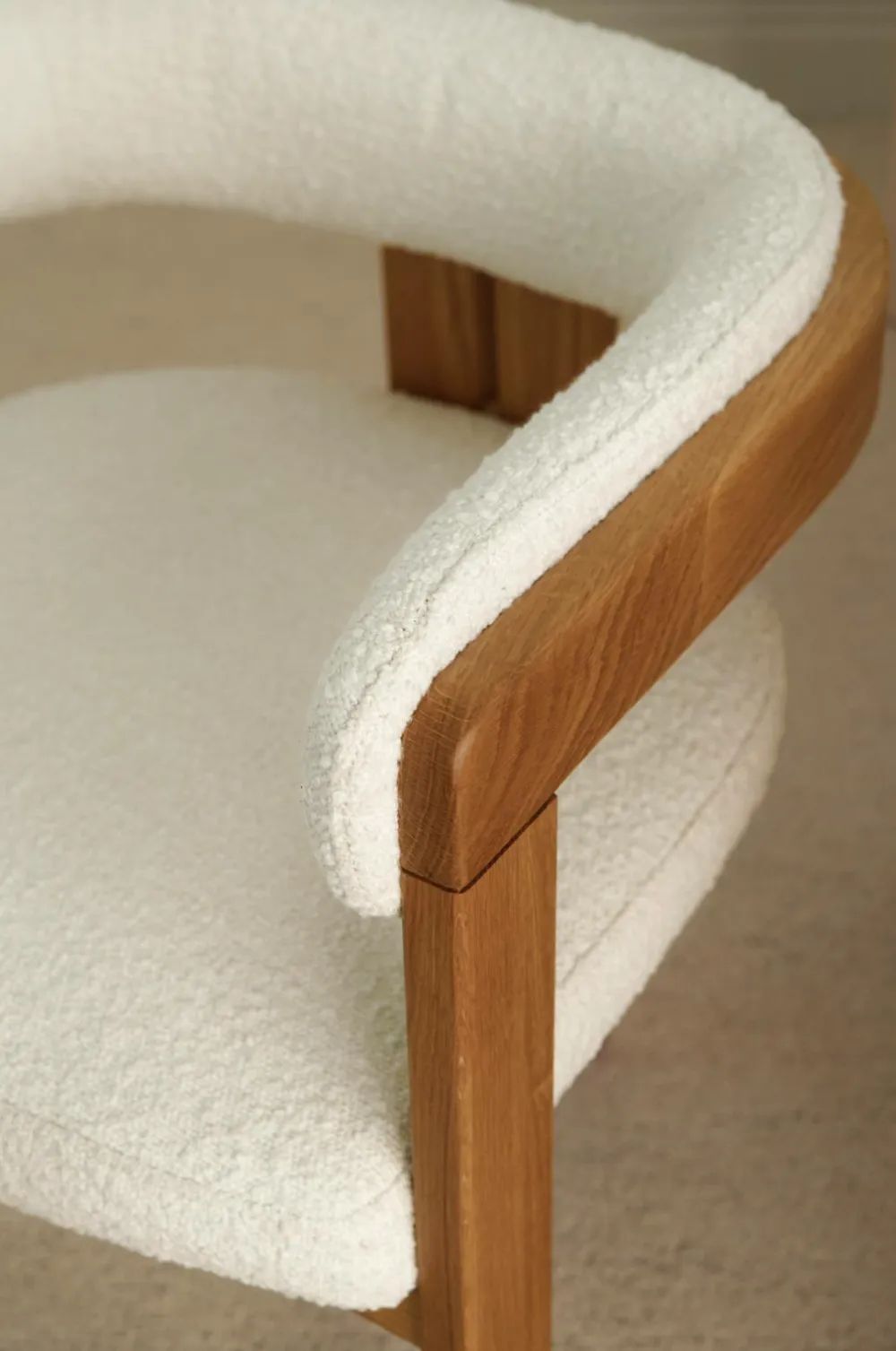 • Sæde i krydsfiner med foret polstring i Bouclé-stof