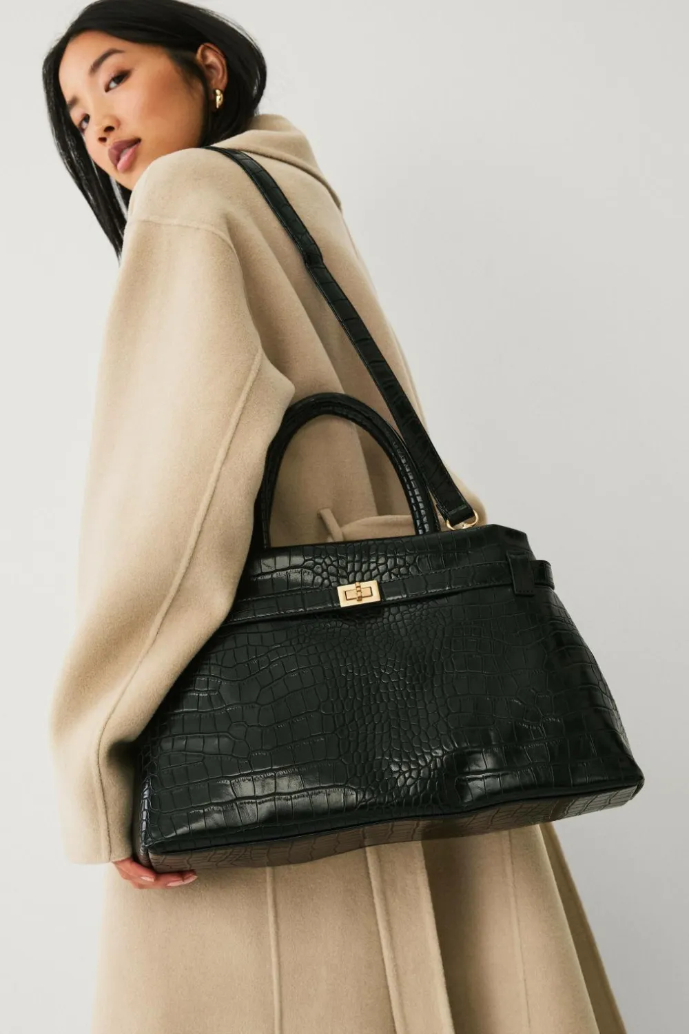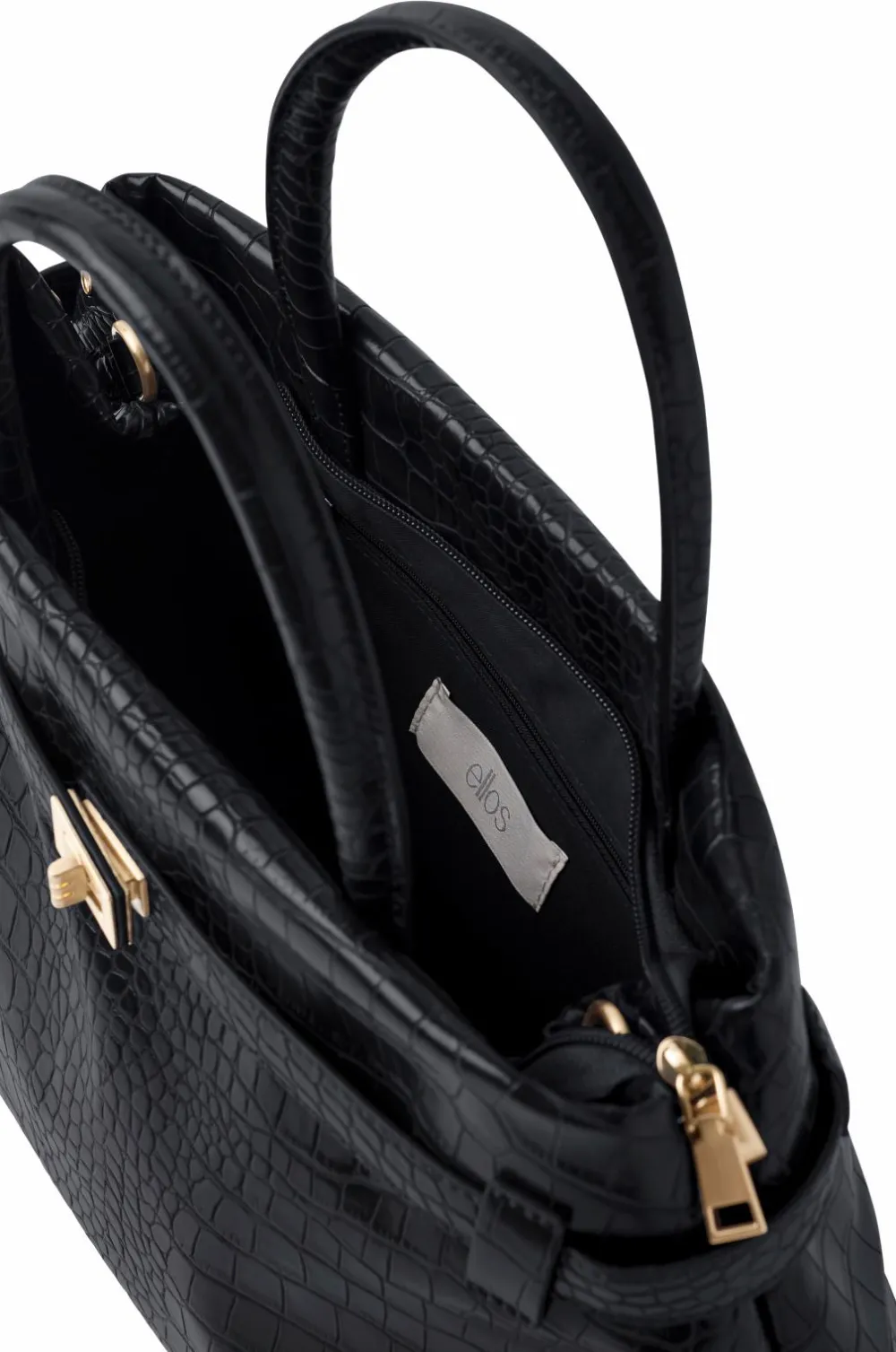 • Taske i imiteret læder med præget krokodillemønster