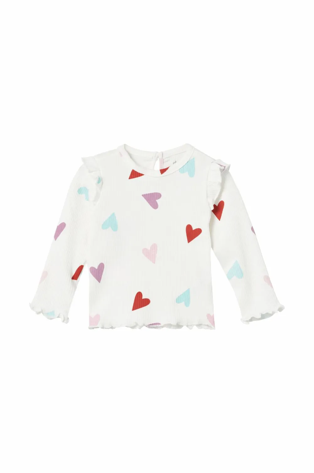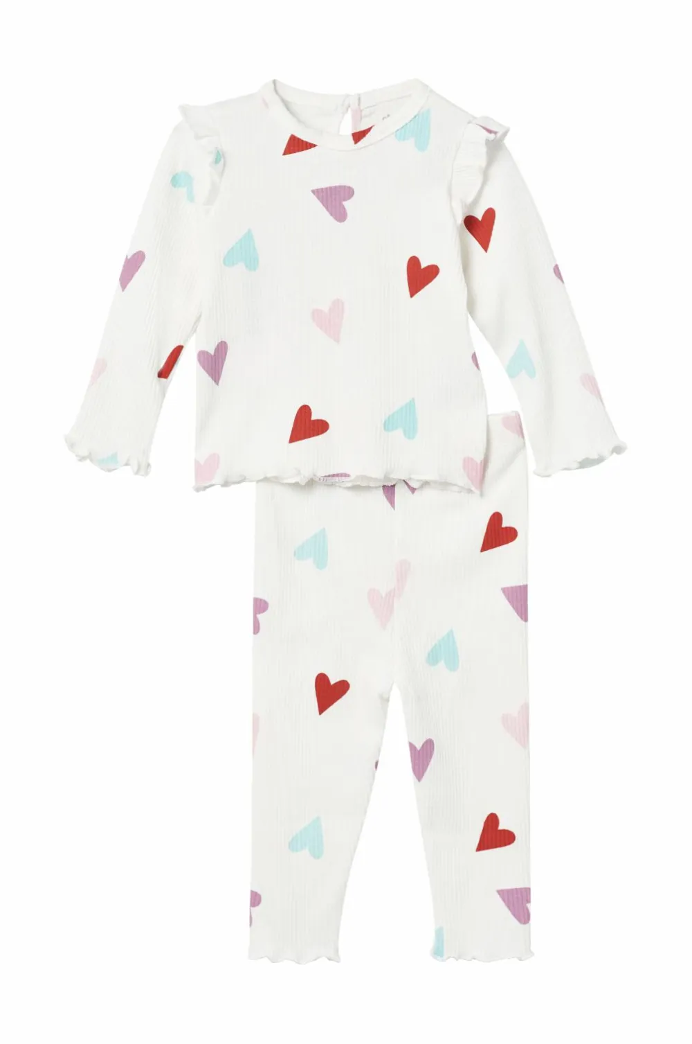 • 2-delt sæt i ribbet, elastisk jersey med printede hjerter