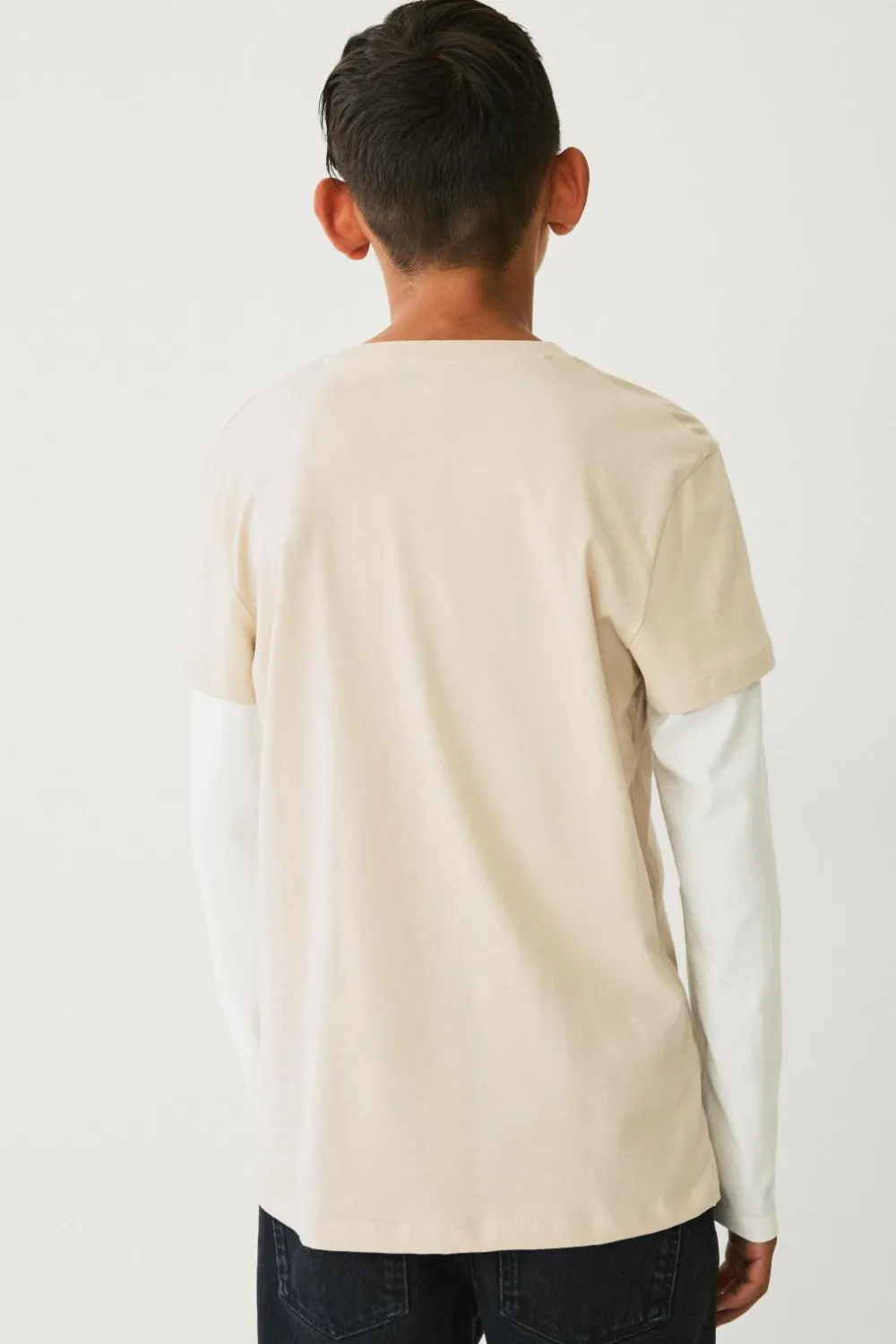 • T-shirt i bomuld med lange imiterede ærmer