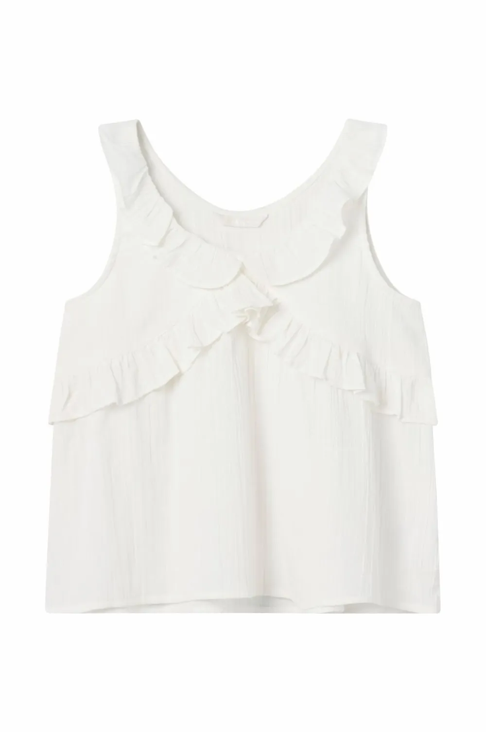 • Volanter rundt om halsudskæringen og ved fronten
