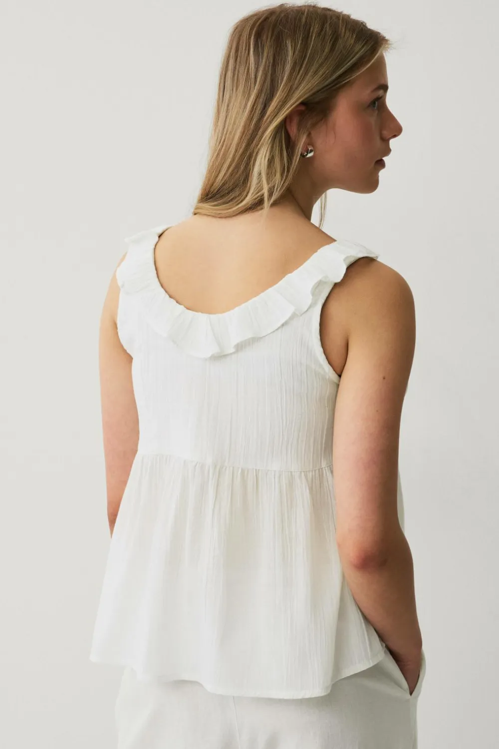 • Ærmeløs top i bomuld med rund hals
