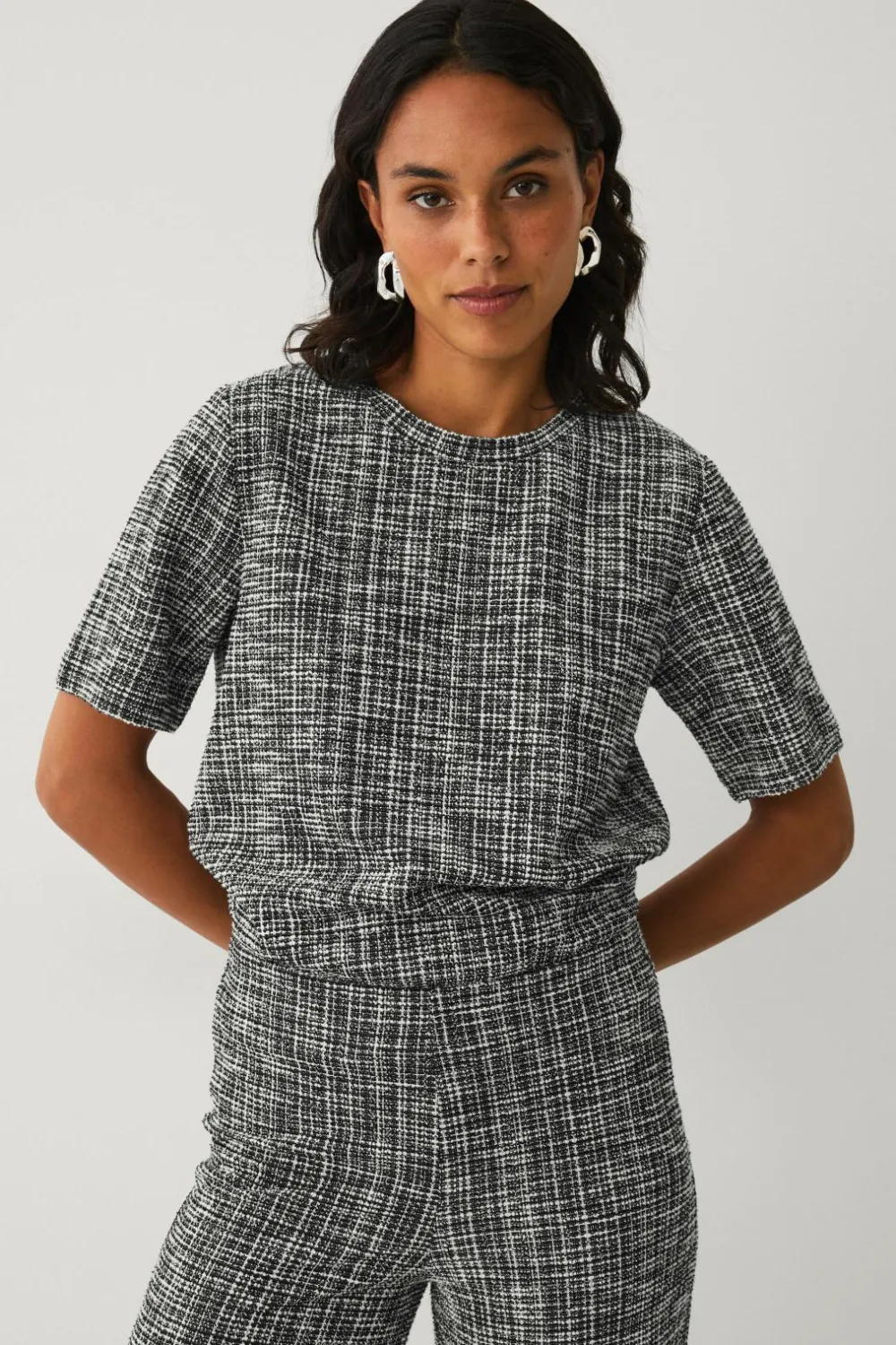 - Materiale: 85% Polyester, 13% Bomuld, 2% Elastan