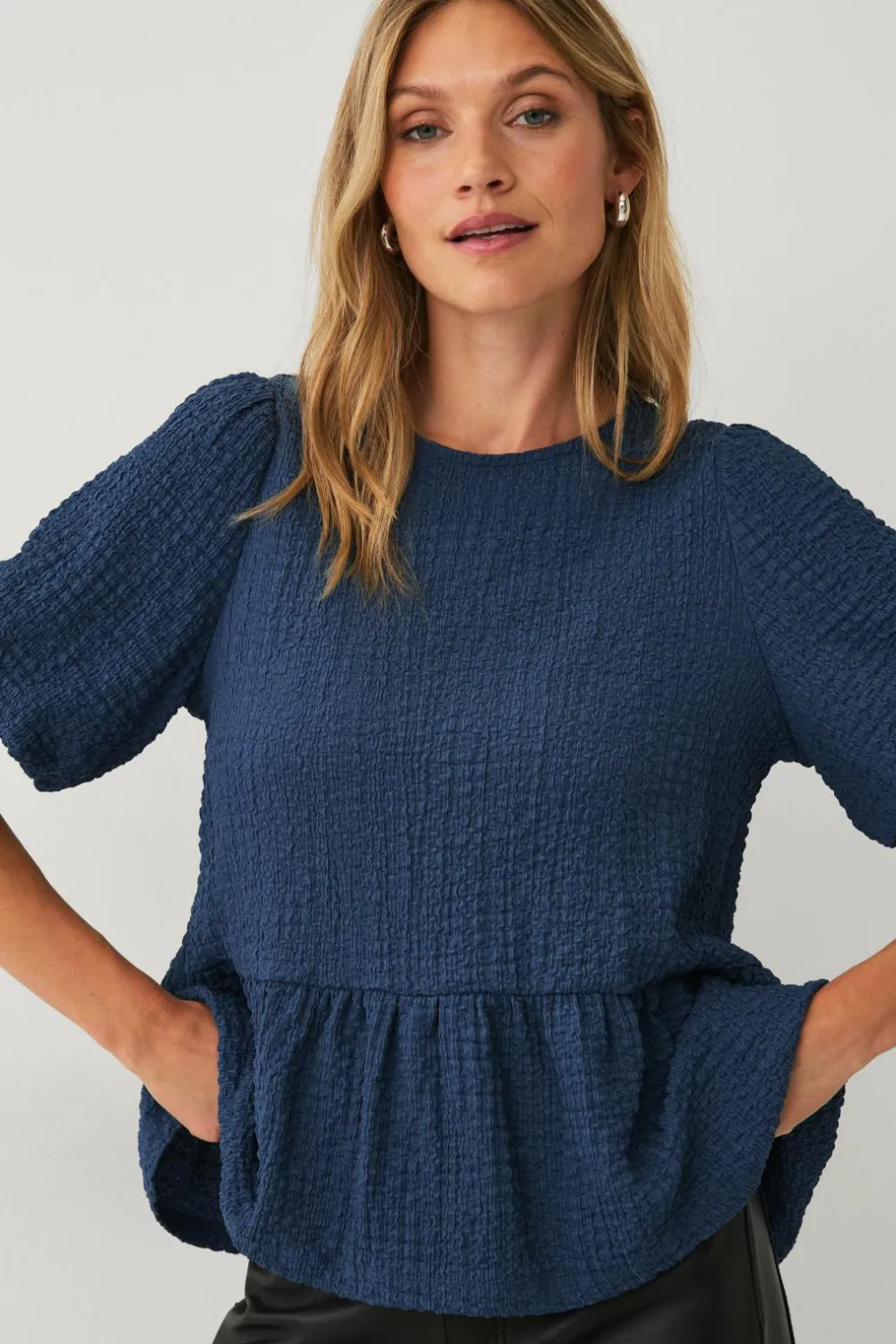 • Korte ballonærmer med elastik ved manchetterne