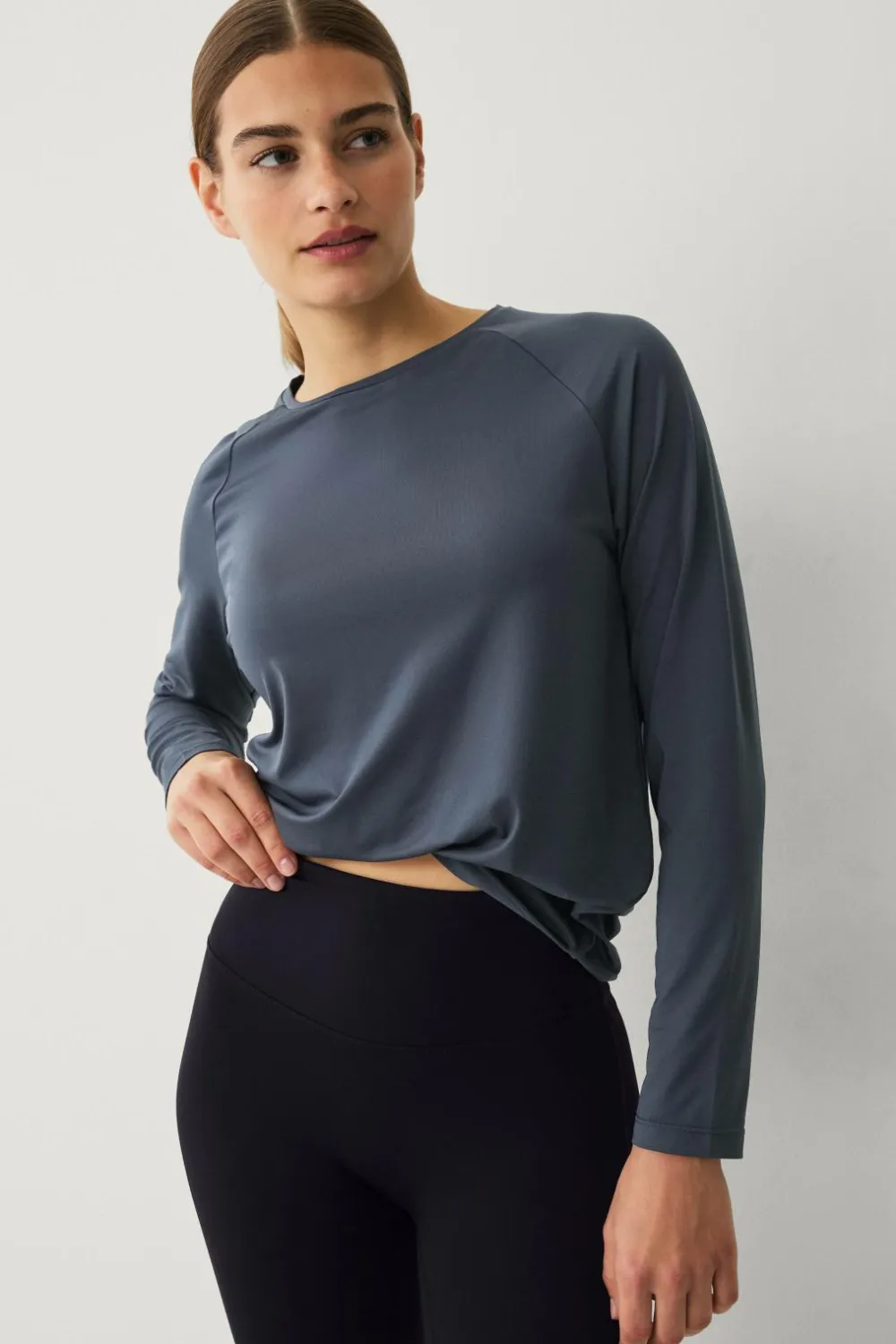 • Langærmet træningstop med løs pasform