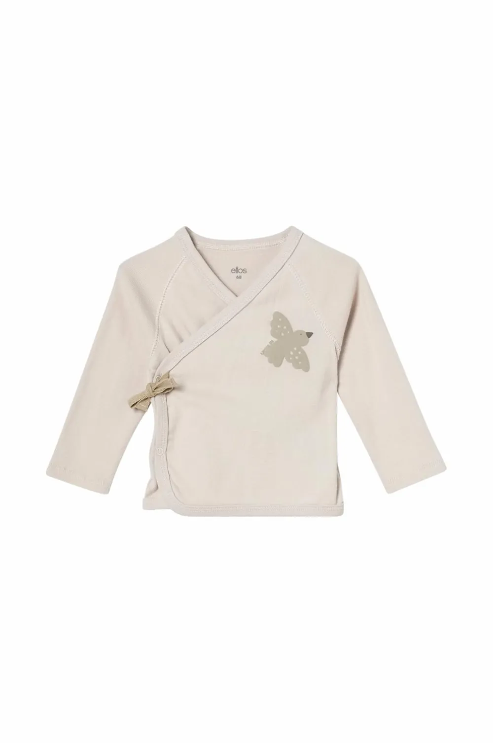 • En langærmet slå om-bluse med trykknapper i siden og forneden. Bindebånd i siden.