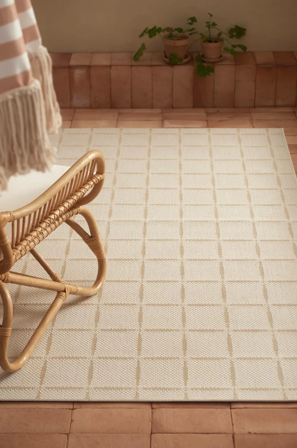 • Tæppet er perfekt til altanen, terrassen eller udestuen og kan selvfølgelig også bruges indendørs.