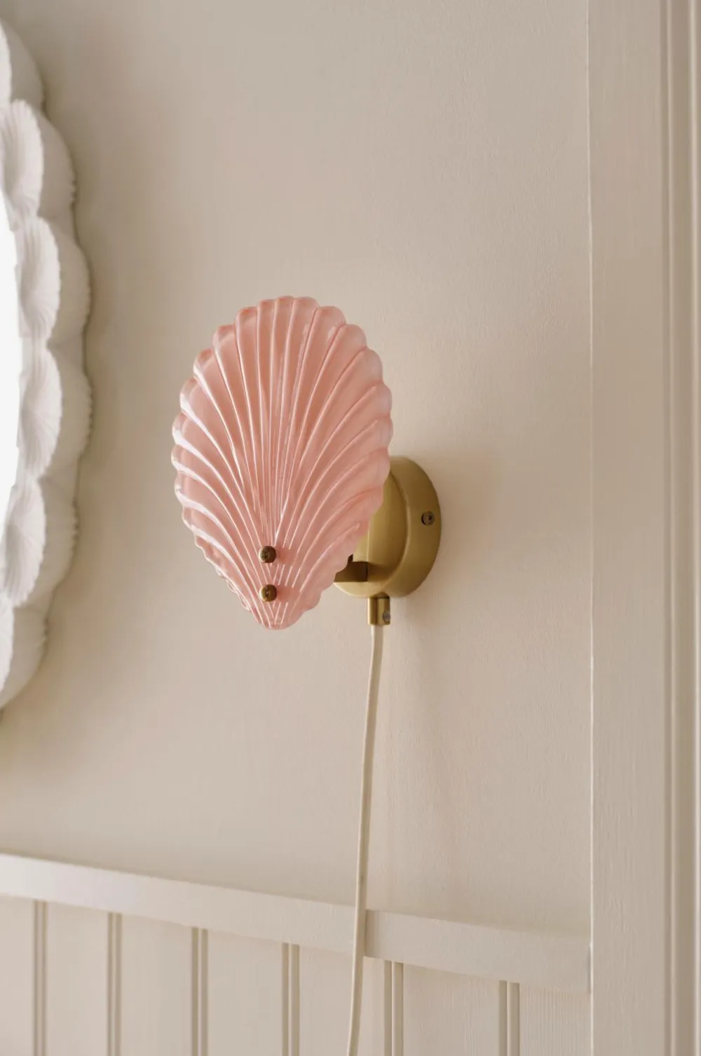 • Muslingeformet væglampe i glas og metal