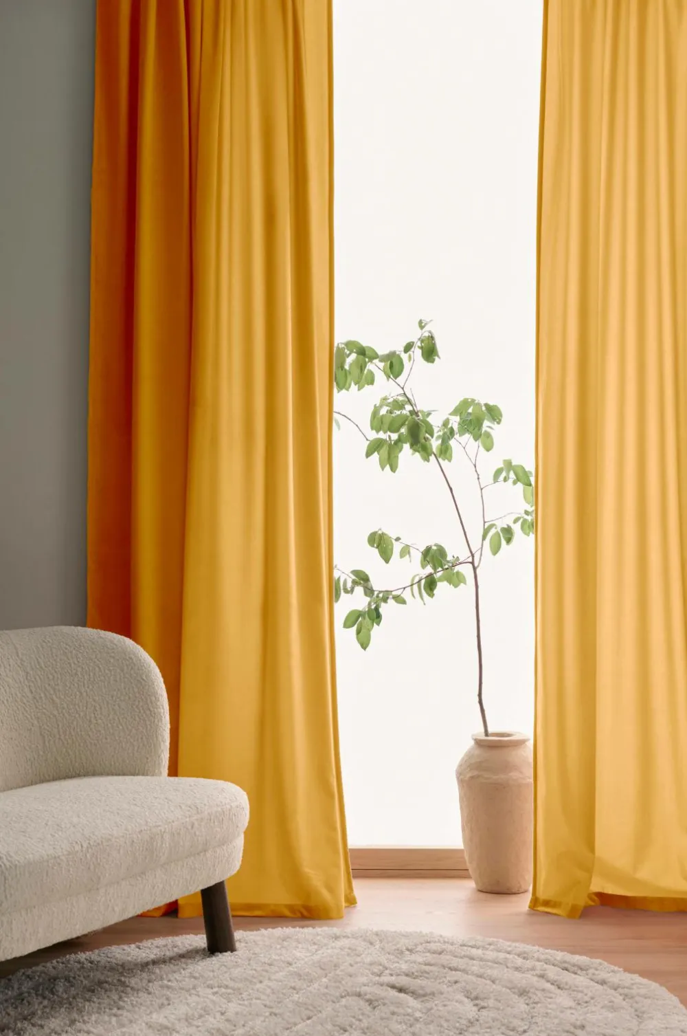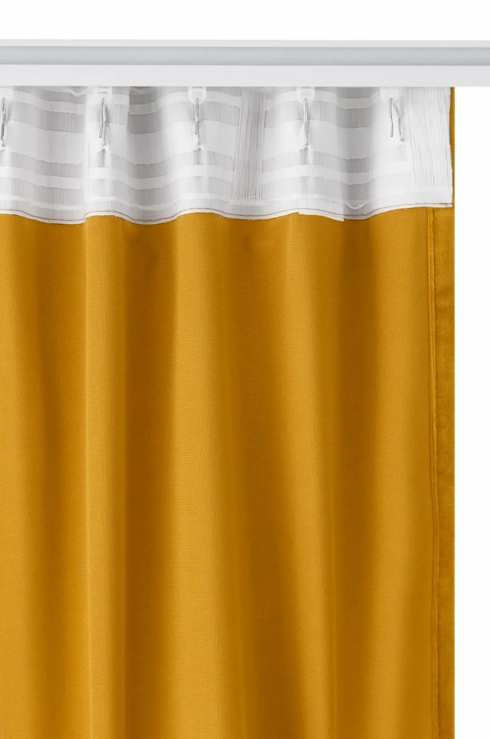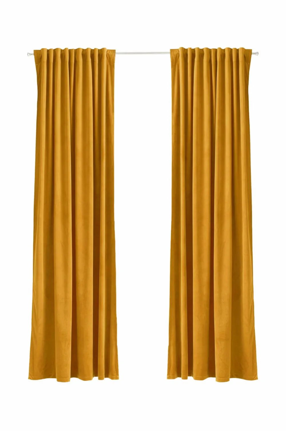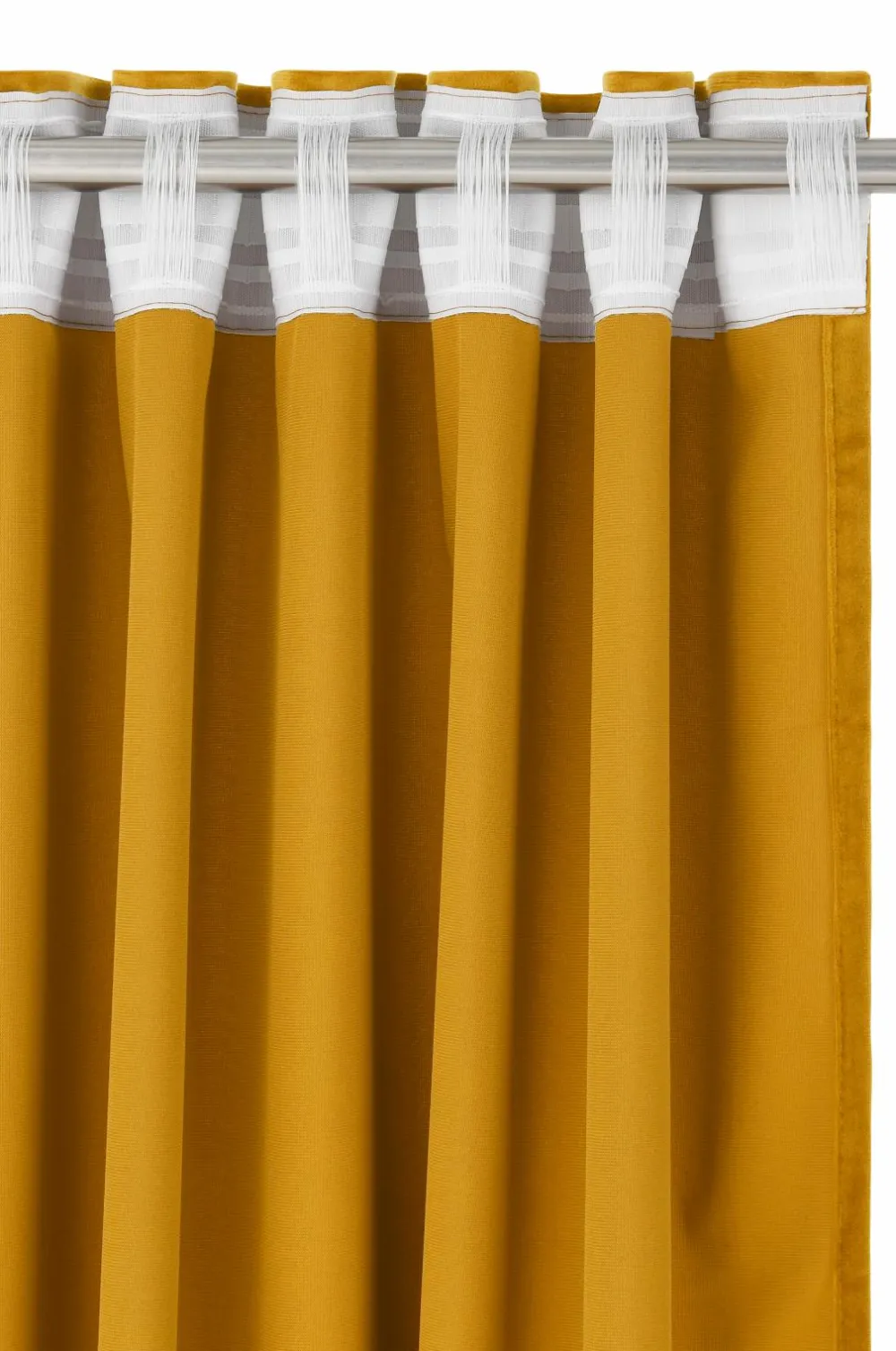 To multibåndslængder i velour med fin glans og blødt fald. Multibåndet gør, at du enten kan hænge gardinerne direkte på en gardinstang gennem de skjulte stropper eller anvende ringe, nålekroge eller fingerkroge. Snore i rynkebåndet gør at du let kan skabe ensartede, flotte læg. Bredde 140 cm. Tre længder: 220, 250 og 300 cm.