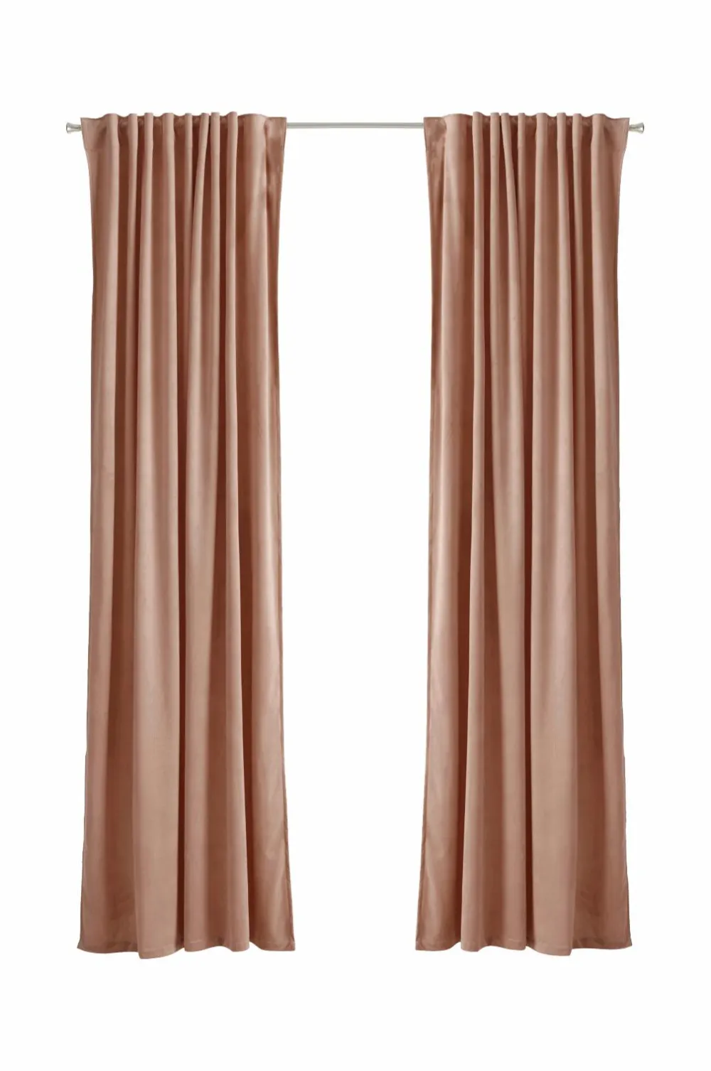 To multibåndslængder i velour med fin glans og blødt fald. Multibåndet gør, at du enten kan hænge gardinerne direkte på en gardinstang gennem de skjulte stropper eller anvende ringe, nålekroge eller fingerkroge. Snore i rynkebåndet gør at du let kan skabe ensartede, flotte læg. Bredde 140 cm. Tre længder: 220, 250 og 300 cm.