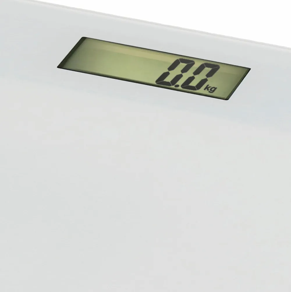 Vægten er stilfuldt designet i hvidt hærdet glas med let afrundede kanter og har tydelige og letlæselige digitale tal. Vægten kan håndtere vægte på op til 180 kg og drives af det medfølgende batteri. Med indbyggede sensorer med høj præcision er vægtens fejlmargin maksimalt 100 gram. Hvis vægten ikke er i brug, slukker den automatisk.