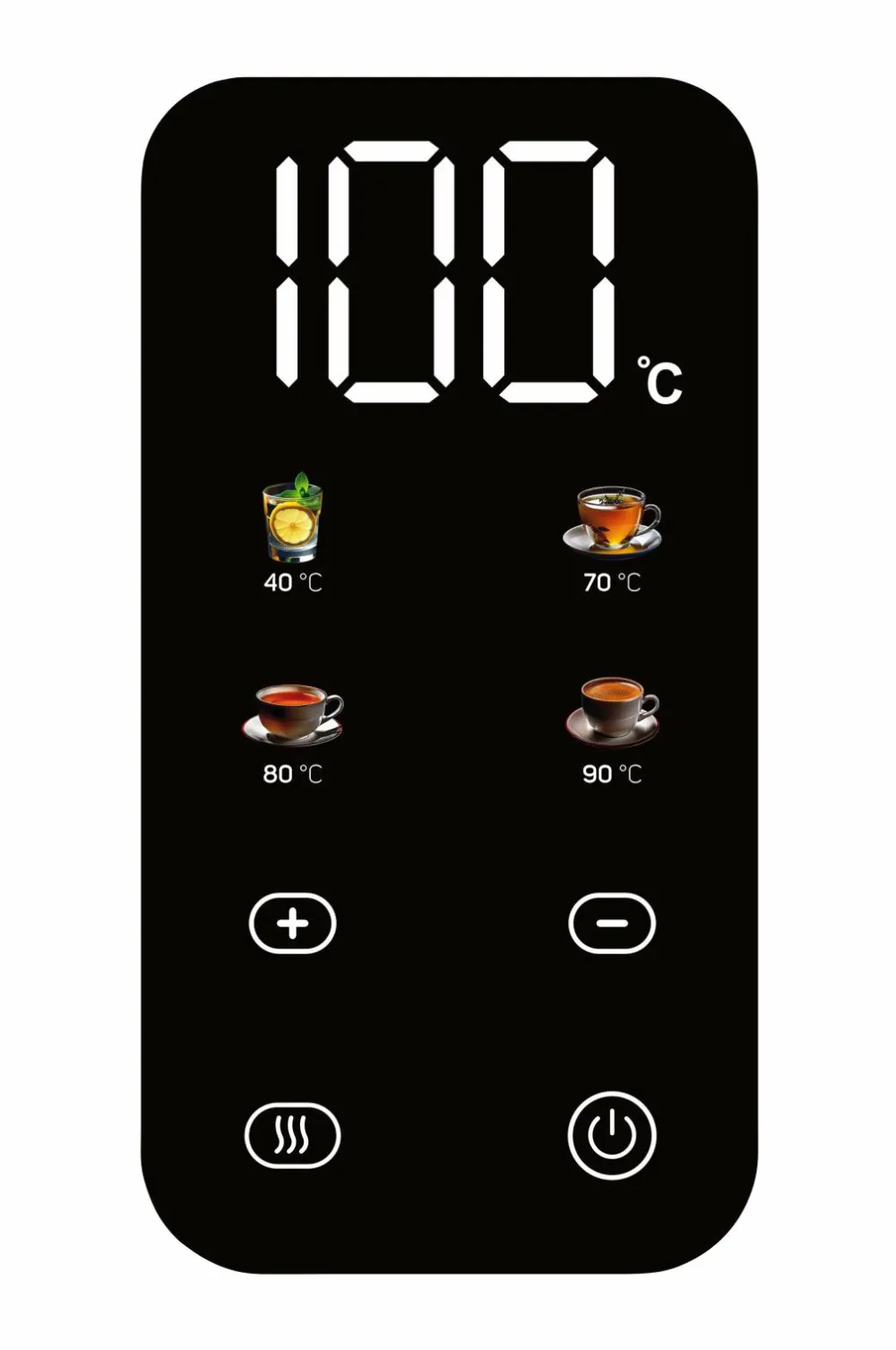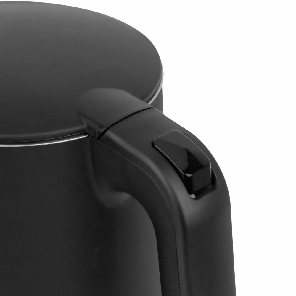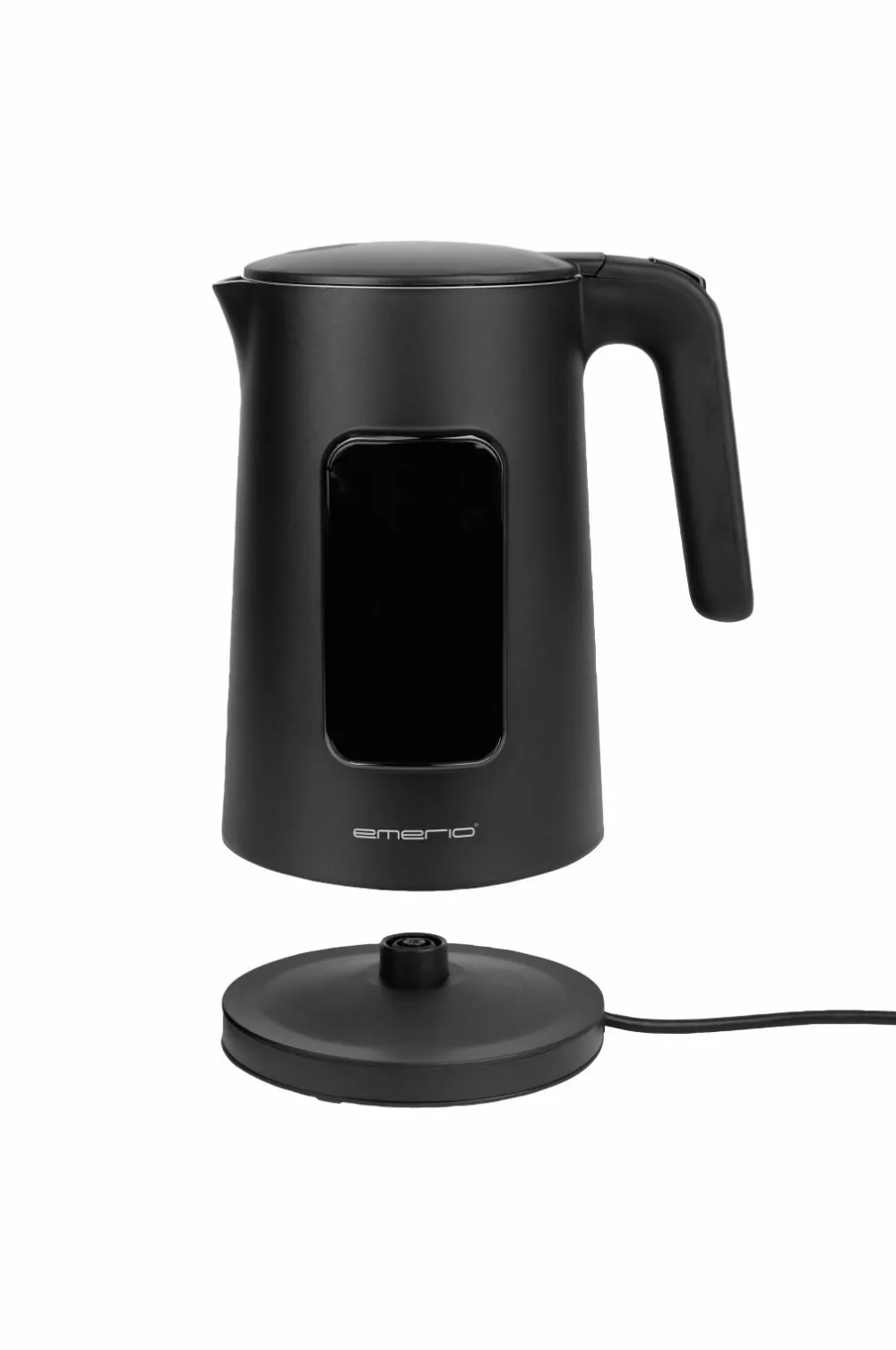 Designet er stilfuldt i mat sort og er ledningsfrit. Kedlen har tydelige vandstandsangivelser og automatisk slukning. Store digitale tal, der tydeligt