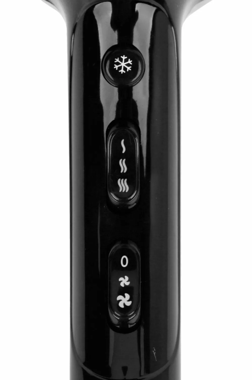 en meget effektiv og kraftfuld hårtørrer i stilfuld sort og ergonomisk design