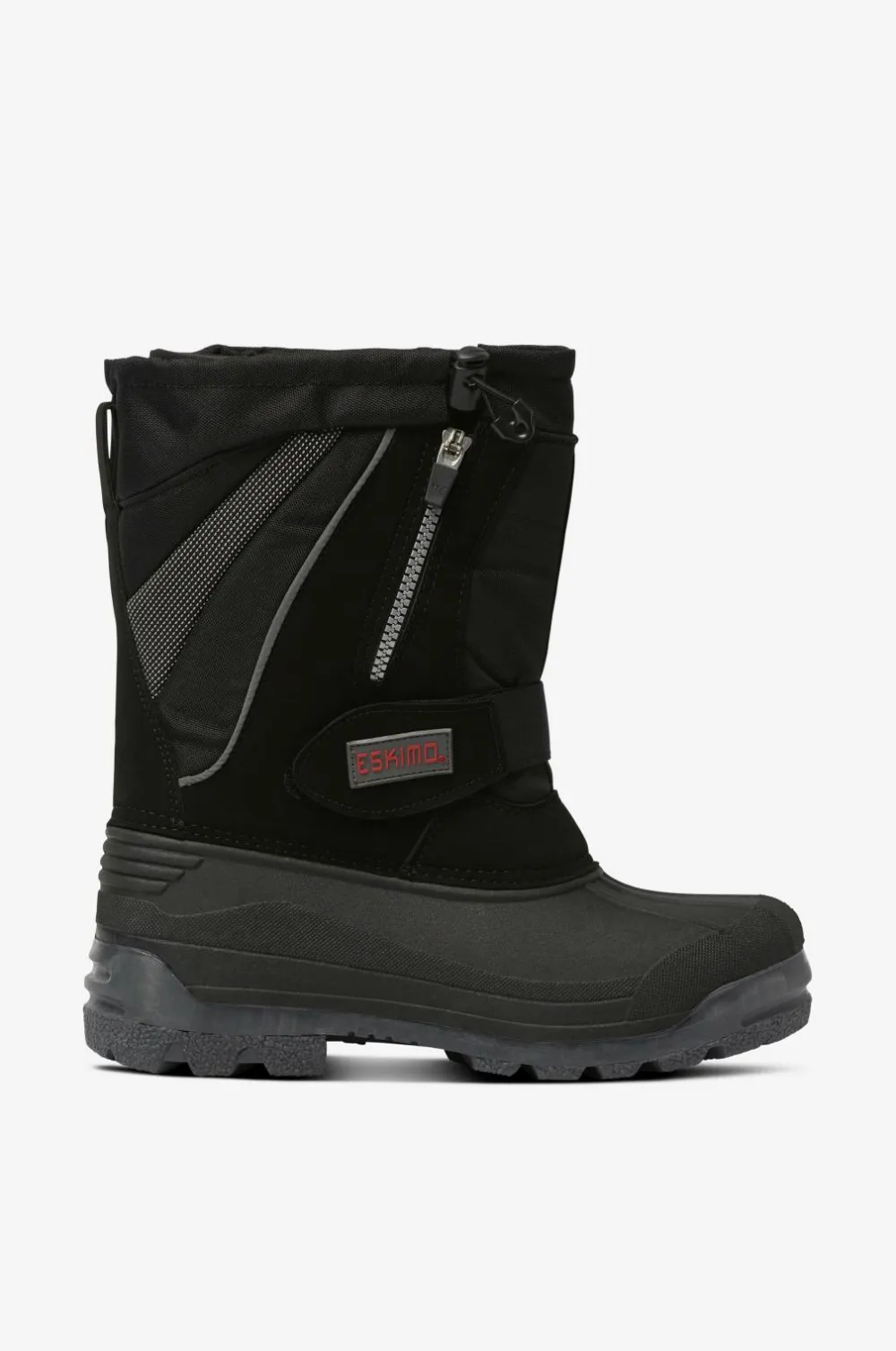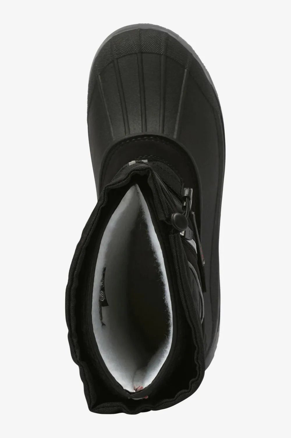 Solide vinterboots med vandtæt gummifod og skaft i vand- og smudsafvisende polyamid. Robust og velegnet til sjap og vådt føre. Regulerbar velcrorem over vristen. Skrå lynlås på skaftet med snelås bagved. Elastisk løbegang med stopper foroven på skaftet. Meget praktisk model med udtagelig inderstøvle i uld som varmer ned til -30 grader. Desuden følger der et ekstra par inderstøvler med. Mellemsålen har varmereflekterende foliesål, som fungerer som kuldebarriere. Ydersålen er helstøbt i affjedrende, groftmønstret og skridsikkert gummi.