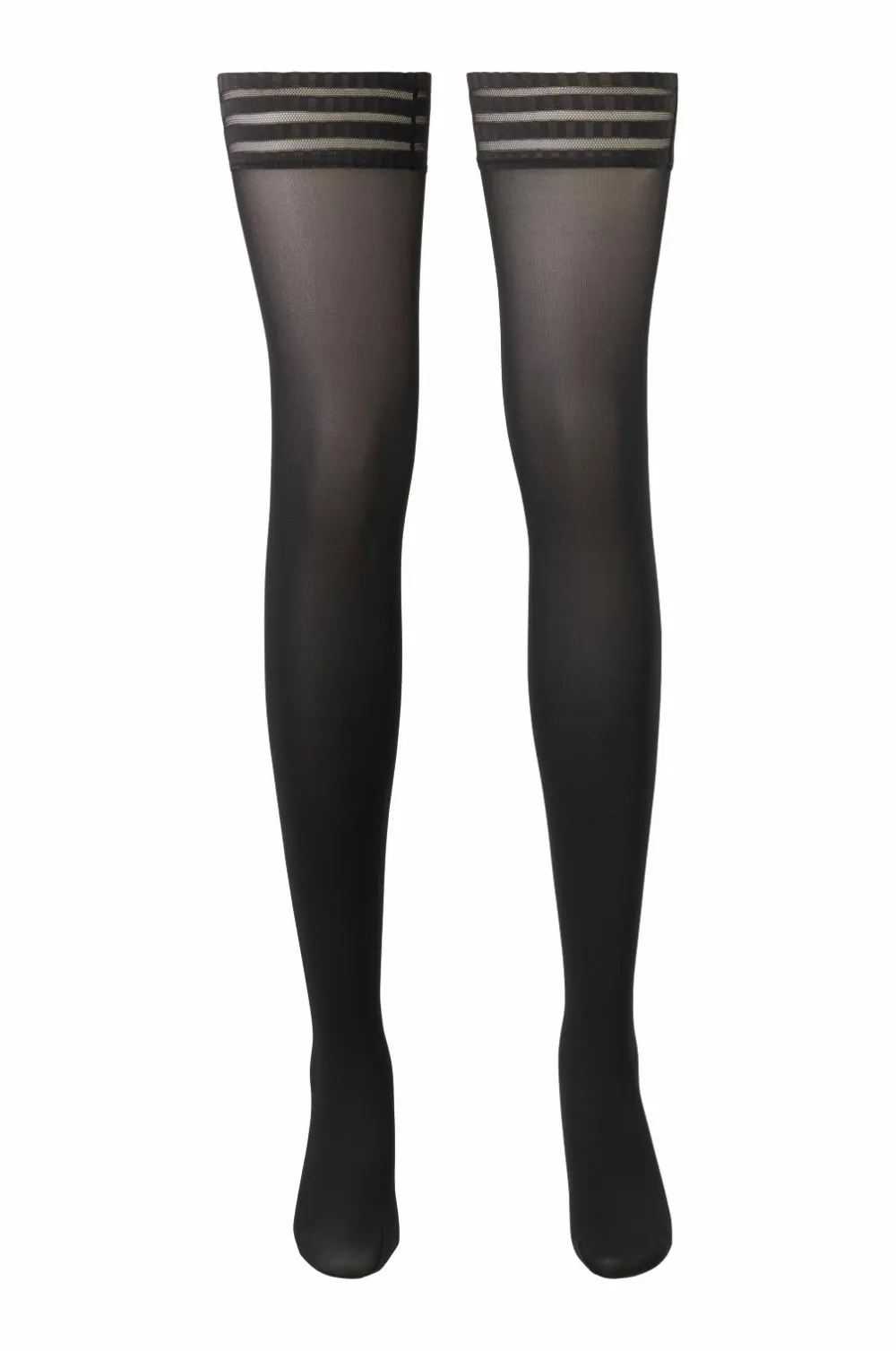 Semitransparante stay ups i mat, blødt materiale. Behagelig tåsøm og skridsikker blonde med indvendig silikone øverst.