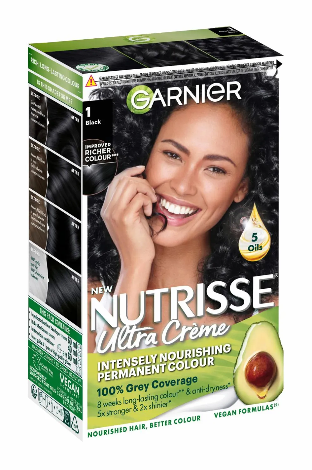 Hårfarvningsmidler kan fremkalde alvorlige allergiske reaktioner. Læs brugsanvisningen, og følg den nøje. Produktet er ikke beregnet til brug på børn under 16 år. Farv ikke håret, hvis du har udslæt i ansigtet eller følsom, irriteret og skadet hårbund, eller hvis du har reageret på hårfarvningsmidlerne tidligere.