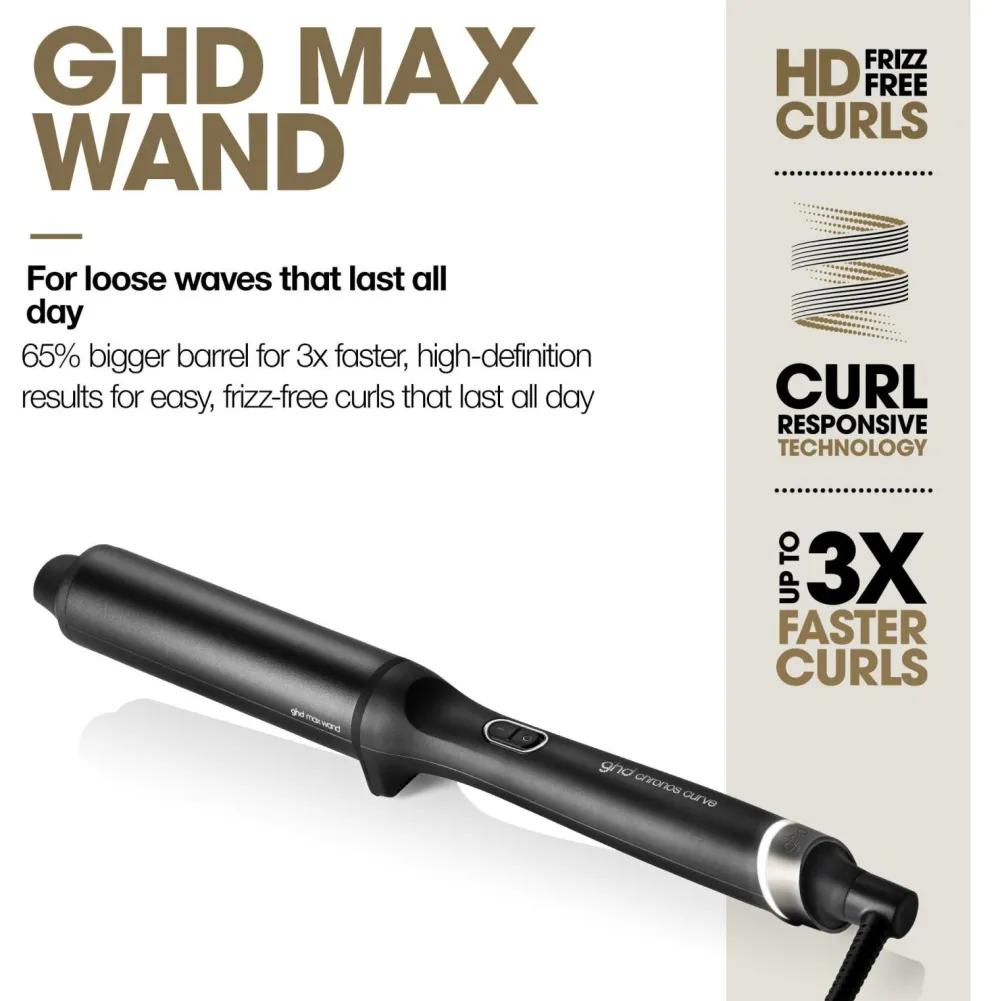 Vi introducerer den nye ghd Chronos Curve Max Wand, det ultimative stylingværktøj med Curl-Responsive Technology. Denne krøllejern er designet og testet af professionelle og er vores største krøllejern til dato. Den er udviklet til at give 3 gange hurtigere resultater¹ med 65 % større overfladeareal for nemme, krusfri krøller³, der holder hele dagen⁴.