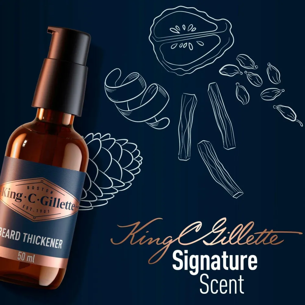 – King C. Gillette Beard Thickener for et mærkbart pletfrit skæg på 14 dage