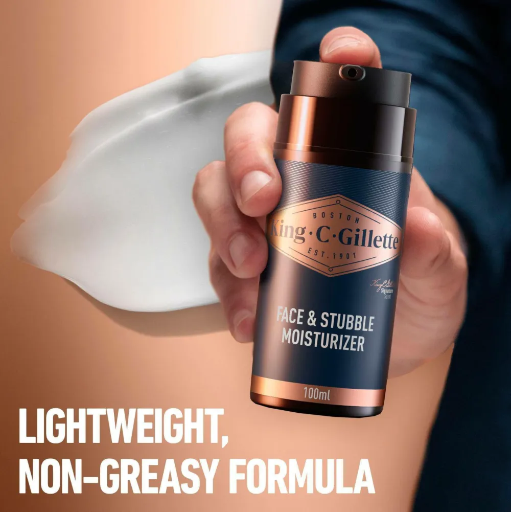 – Kong C. Gillette Face & Stubble Moisturiser fugter og plejer skæghårene for at blødgøre og udglatte ru, stikkende skægstubbe