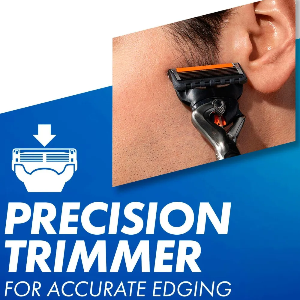 Bladene har en større smørestrimmel (sammenlignet med Fusion5) for komfort og glid. Nyd den ekstra barberbladsstabilisering, som holder bladene optimalt placeret, og den højere beskyttelsesskærm, som øger beskyttelsen af huden. Præcisionstrimmeren på bagsiden er perfekt til styling af ansigtshår, især på svært tilgængelige steder. Vores ultraskarpe, anti-friktions-barberblade sikrer en glat barbering og passer til alle Gillettes 5-bladshåndtag (undtagen GilletteLabs). ProGlide-refillerne kan holde i op til en måned.
