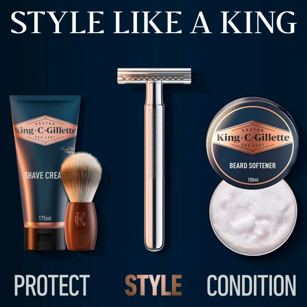 Double edge safety razor til mænd med 5 blade – King C. Gillette Double Edge Safety Razor kombinerer vores klassiske, ikoniske design med moderne blade til præcis barbering og formning.
