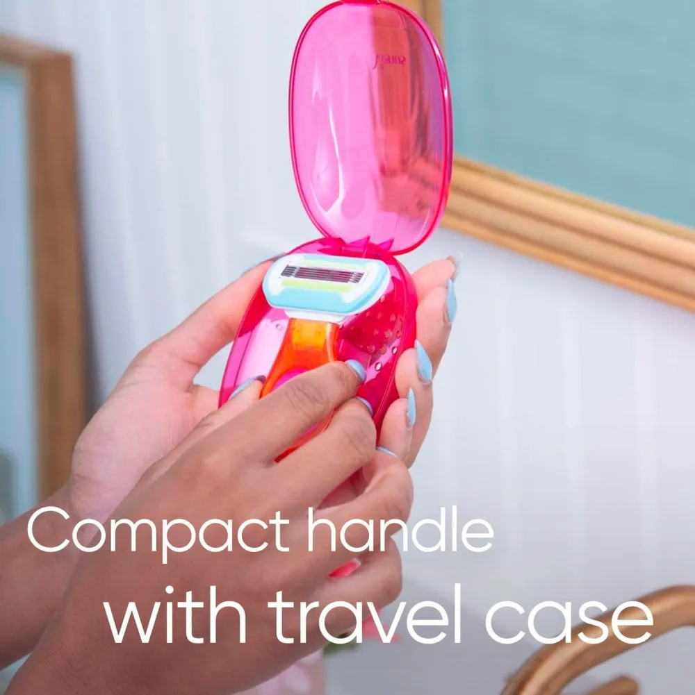 Skraberen har 5 blade til en super tæt barbering og minihåndtag til brug på farten. Bladene barberer tættere på huden og giver en glathed, der varer ved.