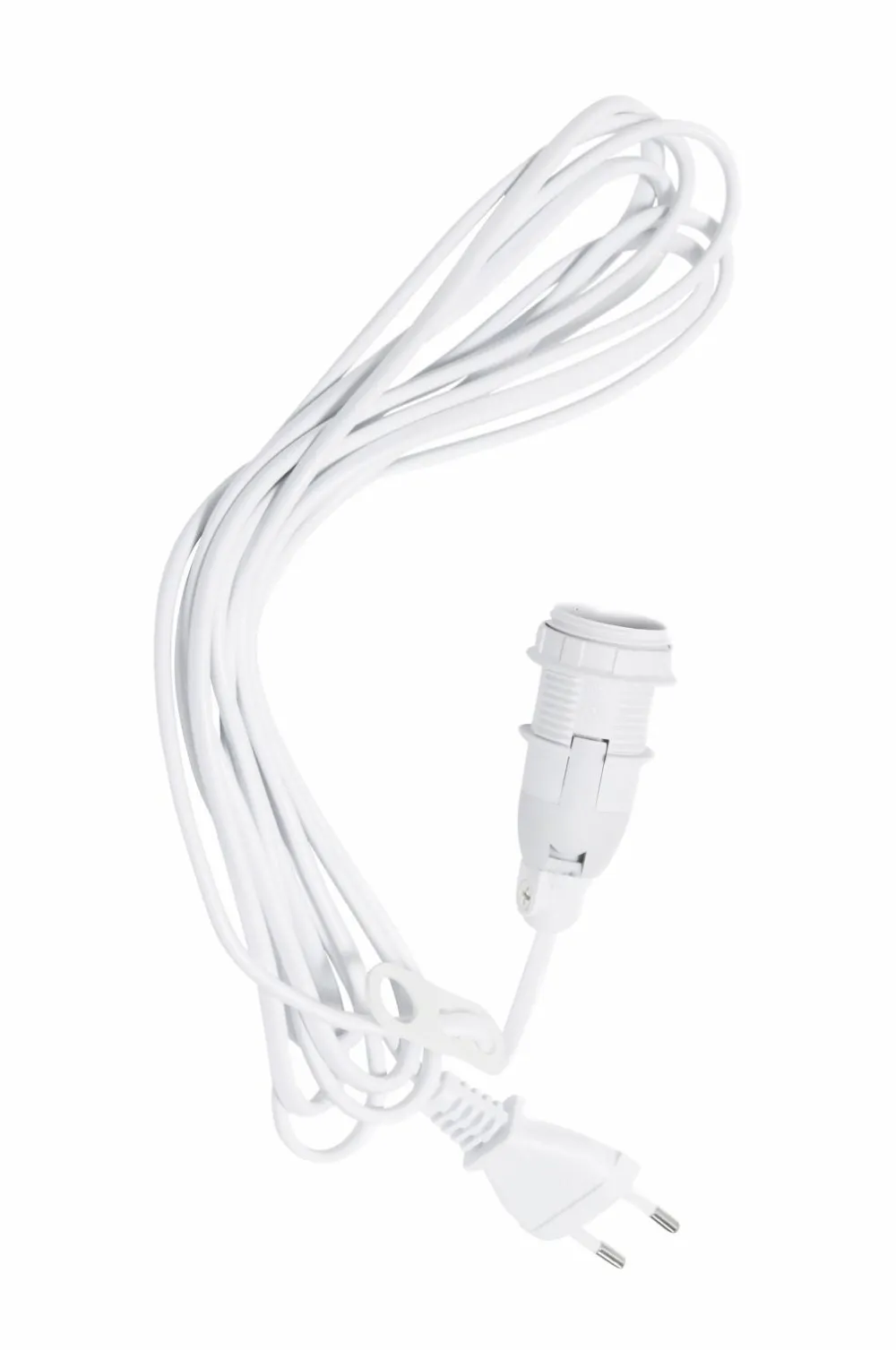 Ledningssæt med 350 cm lang hvid plastledning med afbryder, hvid lampeholder og ring. Kombiner ophænget med en julestjerne eller en hvilken som helst lampeskærm med e14-ringmontering. Ophænget er kompatibelt med lysdæmper.