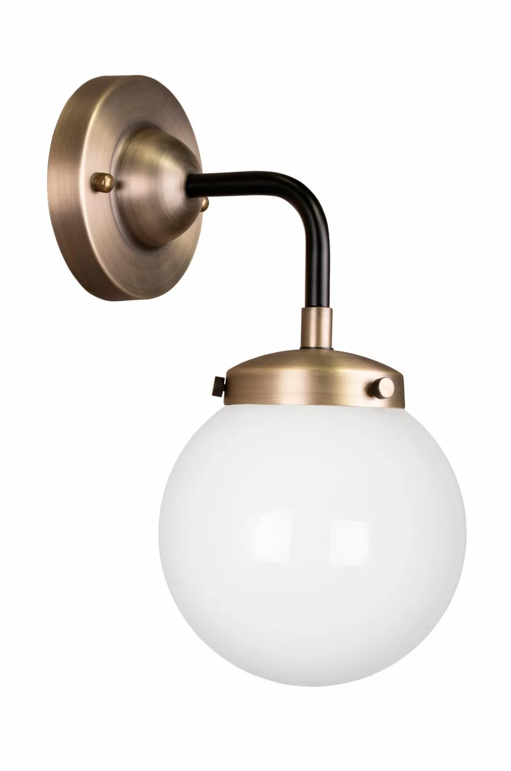 Alley IP væglampe minder om århundredeskiftet med sine detaljer i gammeldags stil. Passer udmærket på væggen i badeværelset eller køkkenet da den er IP44-klassificeret. Lampen er fremstillet af metal i farven antikmessing med detaljer i matsort med hvid opalglaskuppel. Til fast installation. Bredde: 15 Dybde: 20 Højde: 30 (cm) Fatning: 1xE27 maks. 60 W Rek. Pære: L143 (Medfølger ikke)