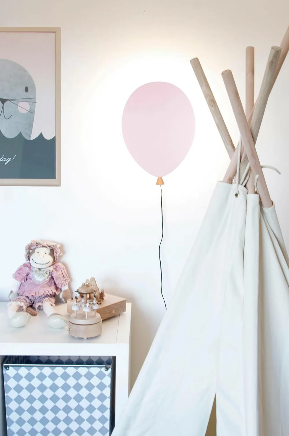 Væglampe, som med sin spændende form giver rummet et løft. Integreret LED ligger rundt i hele bagkanten og giver en smuk glorie omkring ballonen. Højde 35 cm, bredde 25 cm, dybde 4 cm. Maks. 6 W. Lakeret finer og detalje af mat ask, hvor den sorte ledning med strømafbryder virker som ballonens snor. Pære medfølger.