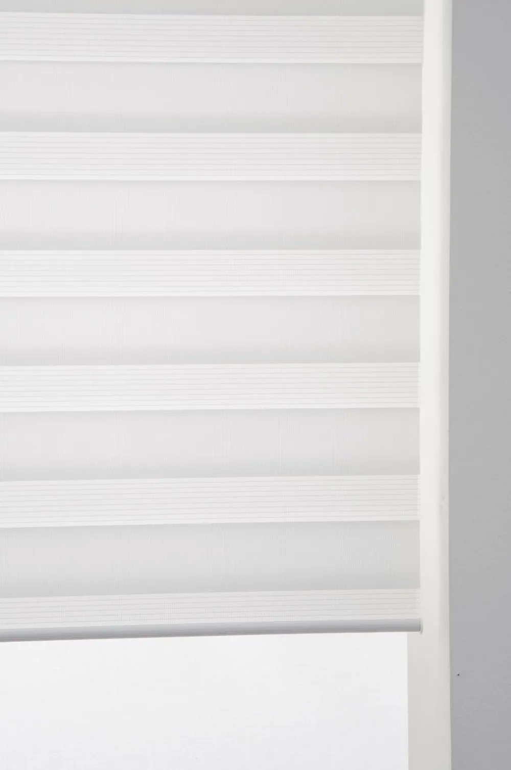 En dobbelt rullegardin med dækkende og transparente striber, der afhængigt af placeringen mod hinanden, slipper lys ind eller holder det ude.
